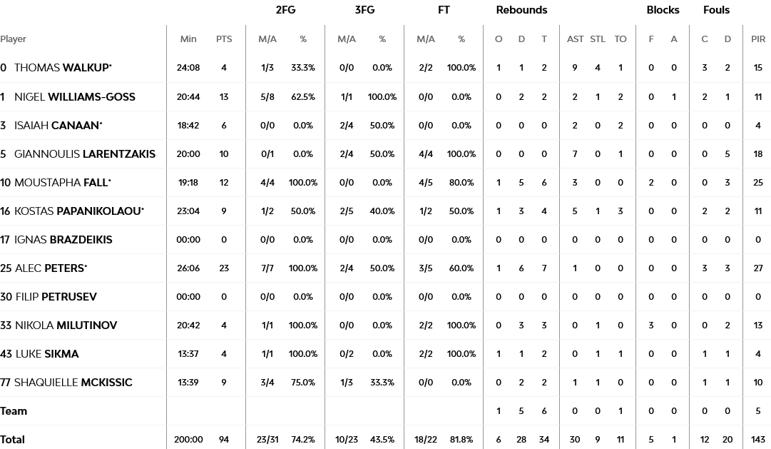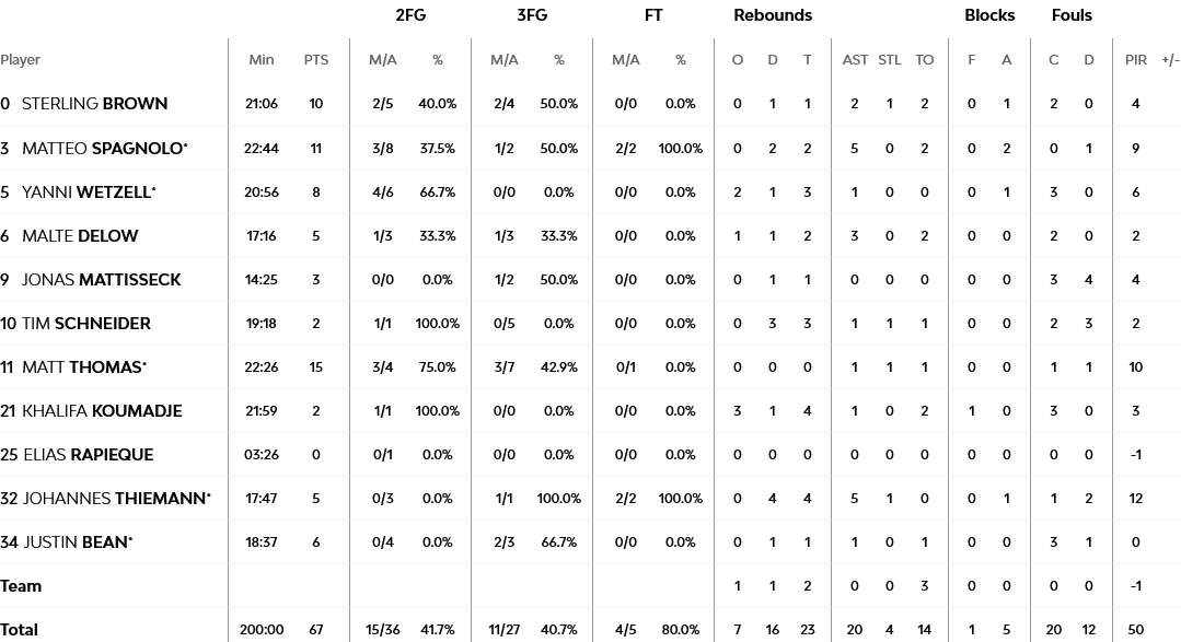 Ξεχώρισαν: Φόβητρο για ακόμα ένα ματς ο Φαλ με 12 πόντους, έξι ριμπάουντ, τρεις ασίστ και δύο τάπες. Για την Άλμπα, ο Τόμας είχε 15 πόντους.