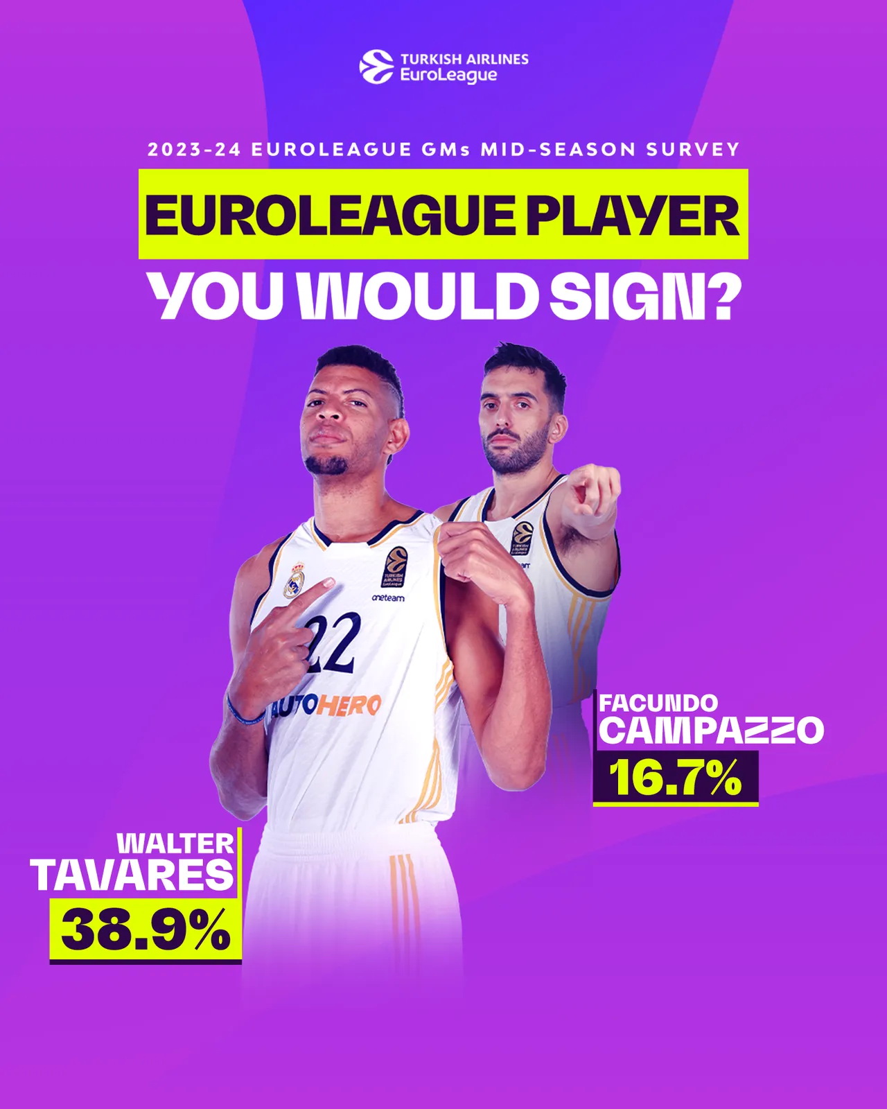 Όπως κάθε χρόνο, έτσι και φέτος, οι GM των ομάδων της Euroleague έλαβαν μέρος στην καθιερωμένη δημοσκόπηση, μετά το πέρας του πρώτου γύρου, προκειμένου να επιλέξουν τους μέχρι στιγμής κορυφαίους, με τον Φακούντο Καμπάτσο και συνολικά την Ρεάλ Μαδρίτης, να θριαμβεύουν.