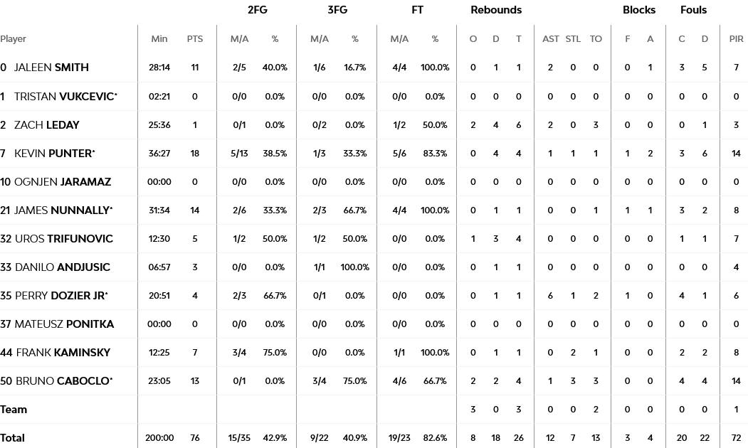 Για την Παρτιζάν, που κοίταζε στα μάτια την αντίπαλο της για 30’, όμως στο τελευταίο δεκάλεπτο είδε τους γηπεδούχους να… βομβαρδίζουν από την περιφέρεια, 18 πόντους είχε ο Πάντερ και 14 ο Νάναλι.