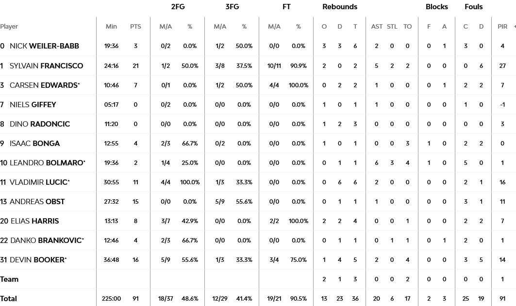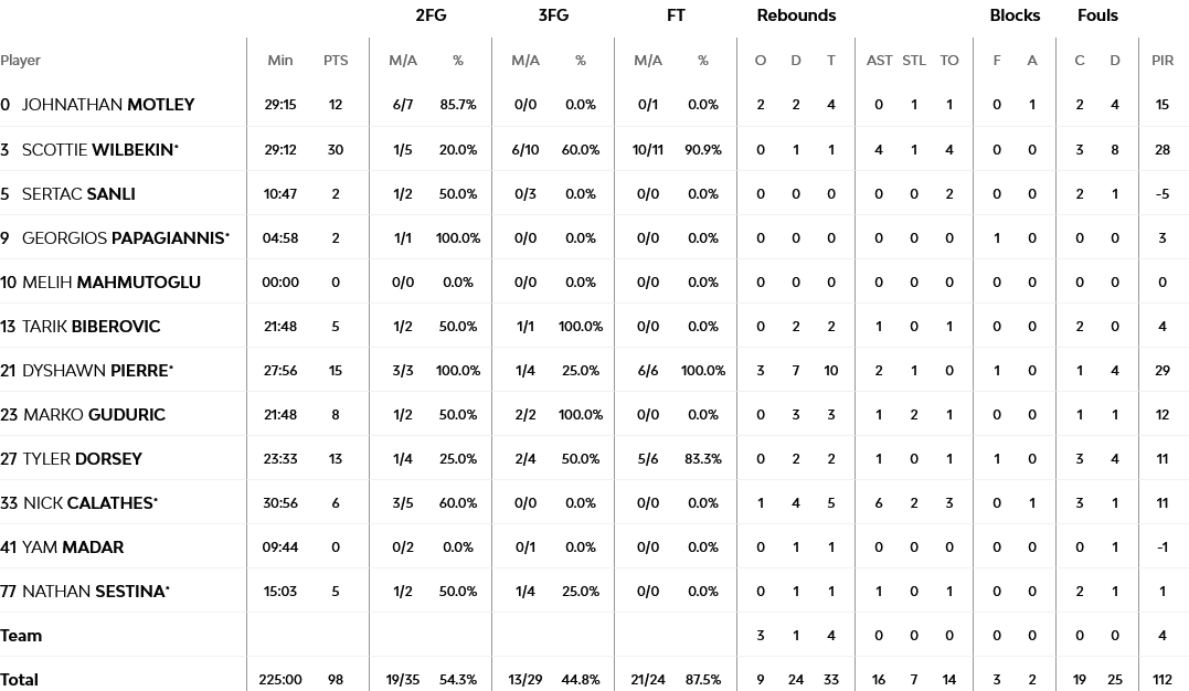 Απολαυστικός ο Γουίλμπεκιν με 30 πόντους και 6/10 τρίποντα, με τον Πιερ να κάνει double – double με 15 πόντους (τους περισσότερους στην παράταση) και 10 ριμπάουντ, ενώ ο Ντόρσεϊ είχε 13 πόντους.