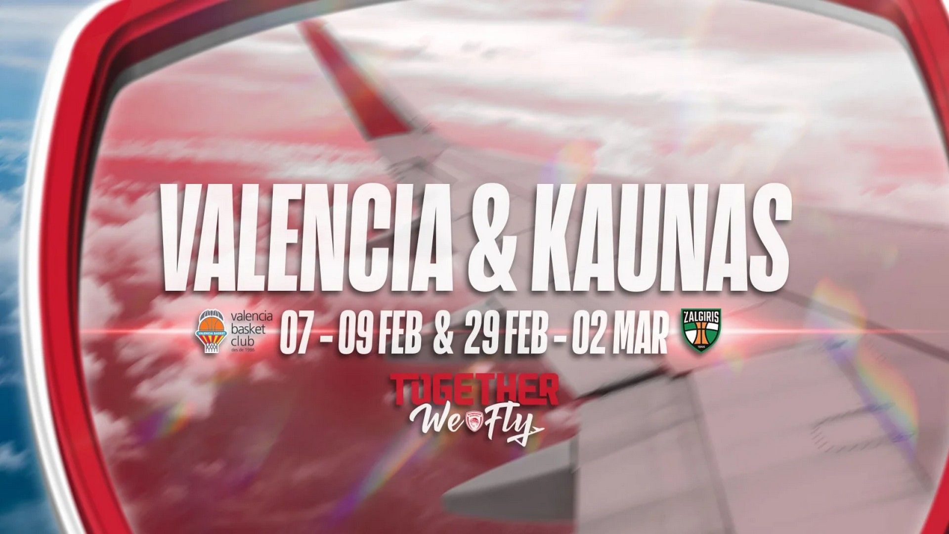 Σε Ισπανία και Λιθουανία θα ταξιδέψει ο Ολυμπιακός το Φλεβάρη για τα παιχνίδι με Ρεαλ, Βαλένθια και Ζαλγκίρις με το πρόγραμμα «Together We Fly» να συνεχίζεται για τους φίλους που θέλουν να μπουν στο ίδιο αεροπλάνο με την αποστολή των Πειραιωτών.