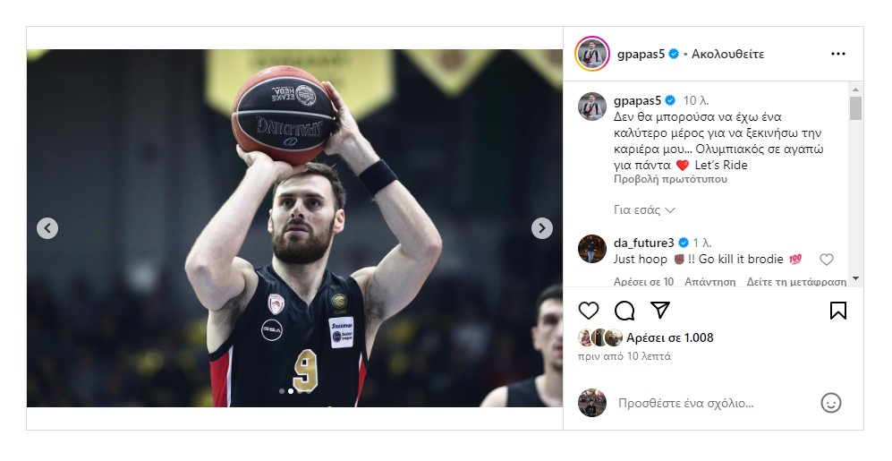 «Δεν θα μπορούσα να έχω ένα καλύτερο μέρος για να ξεκινήσω την καριέρα μου... Ολυμπιακέ σε αγαπώ για πάντα ❤️