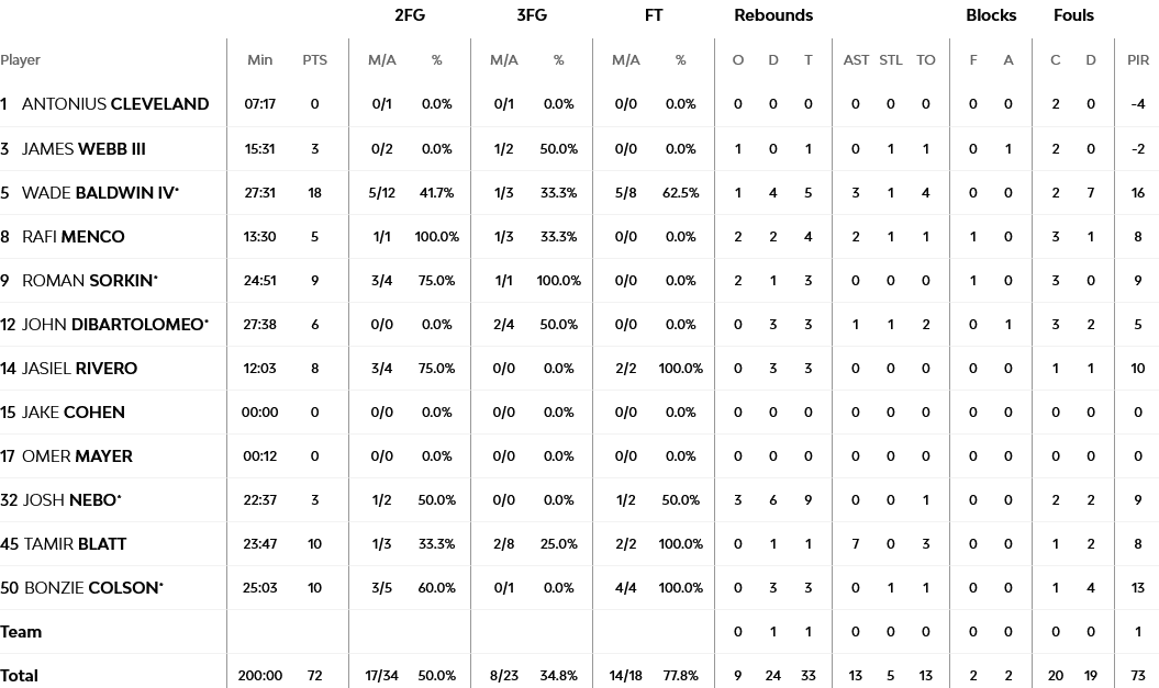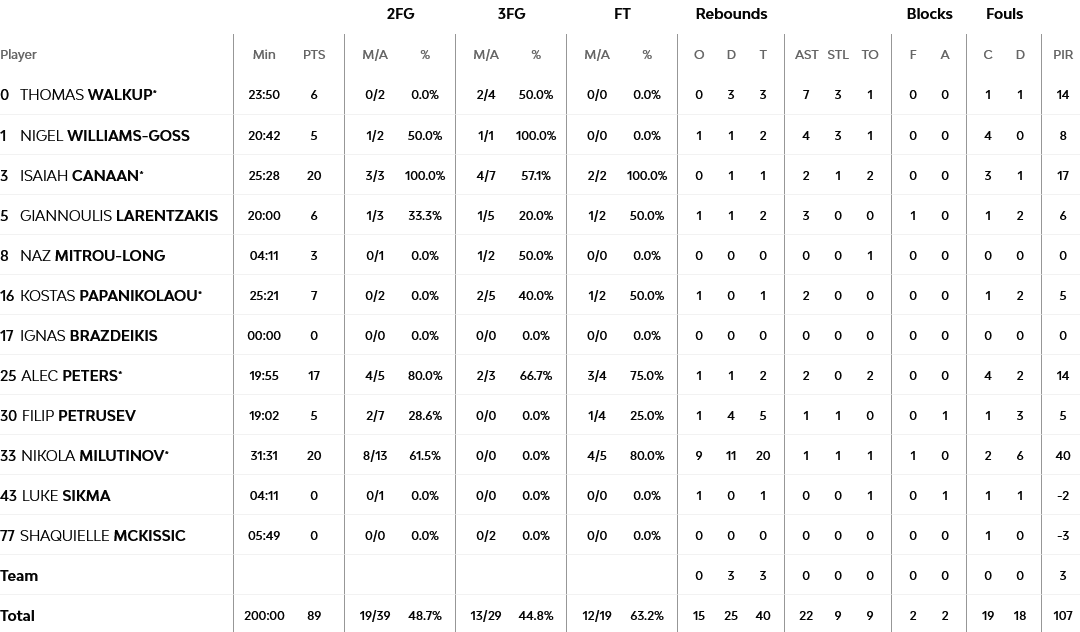 Ξεχώρισαν: Κάνααν και Πίτερς είχαν 20 και 17 πόντους αντίστοιχα, ενώ ο Μπάλντγουιν, για την Μακάμπι, είχε 18 πόντους.