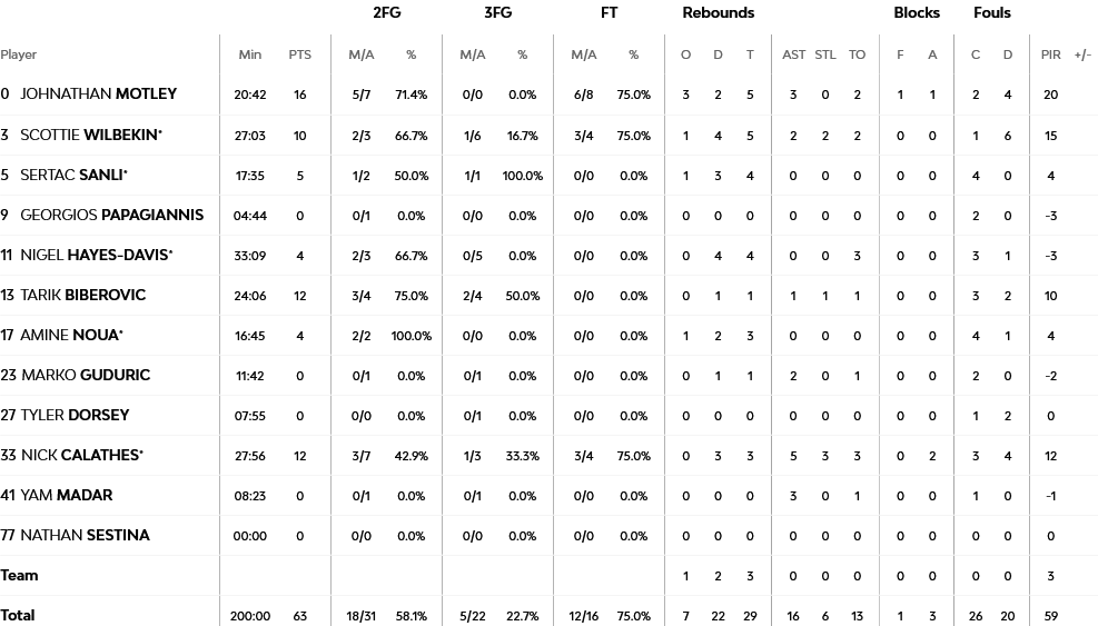 Ξεχώρισαν: 13 πόντους και οκτώ ριμπάουντ είχε ο Λεσόρ, ενώ για την Φενέρ, ο Μότλεϊ είχε 16 πόντους, Καλάθης και Μπιμπέροβιτς από 12 έκαστος και ο Γουίλμπεκιν 10.