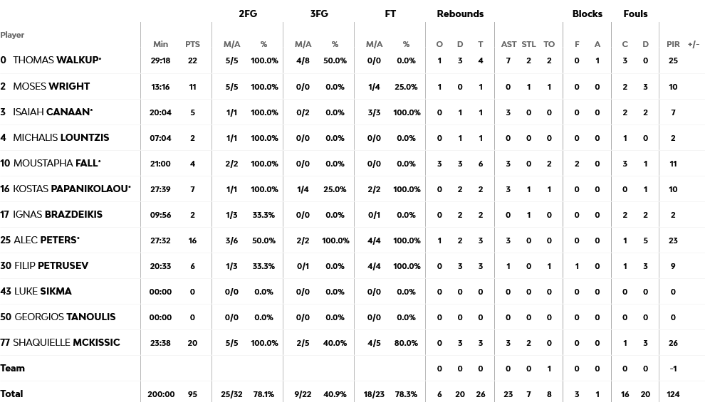 Η μεγαλύτερη διαφορά: +22 για τον Ολυμπιακό (73-95) στο 39’.