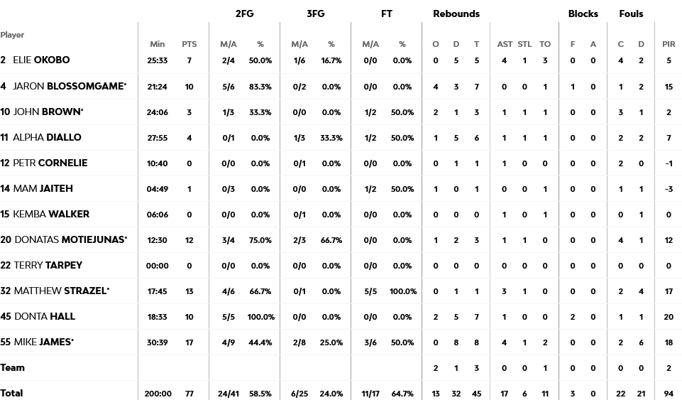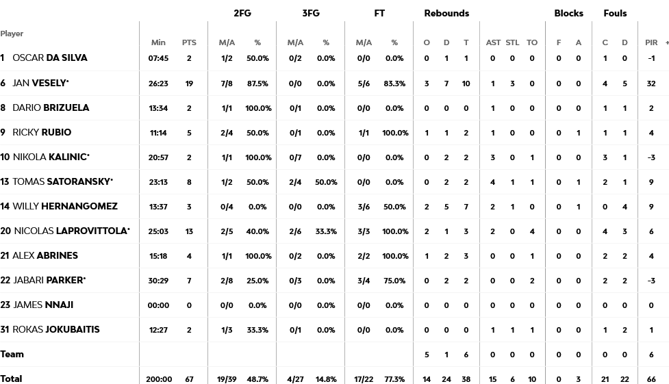 Ο Μάικ Τζέιμς με 17 πόντους, ήταν ο πρώτος σκόρερ της Μονακό, με τον Στράζελ να ακολουθεί με 13 πόντους, τον Μοτεγιούνας με 12 και τους Μπλόσομγκεϊμ και Χολ από 10 έκαστος. Για την Μπαρτσελόνα, 19 πόντους και 10 ριμπάουντ είχε ο Βέσελι και 13 πόντους ο Λαπροβίτολα. Όσον αφορά τον Ρίκι Ρούμπιο, είχε πέντε πόντους, δύο ριμπάουντ και μία ασίστ, σε 11'14.
