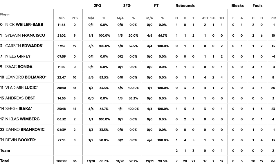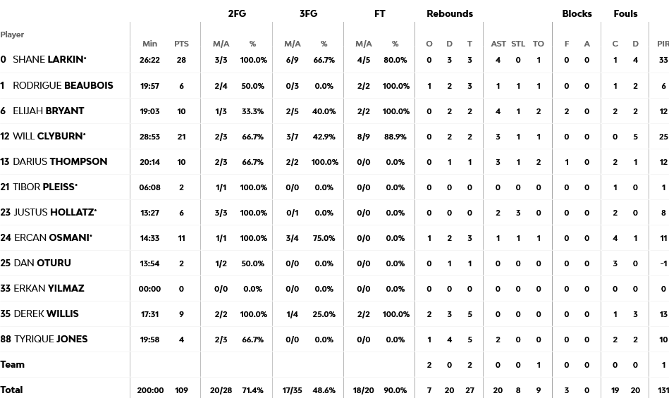 Λάρκιν και Κλάιμπερν ήταν… όλα τα λεφτά για την Αναντολού, με τον πρώτο να έχει 28 πόντους με 6/9 τρίποντα και τον δεύτερο 21 πόντους. Για την Μπάγερν, Έντουαρντς και Λούτσιτς είχαν 19 και 18 πόντους αντίστοιχα, με τον Ιμπάκα να προσθέτει 15.