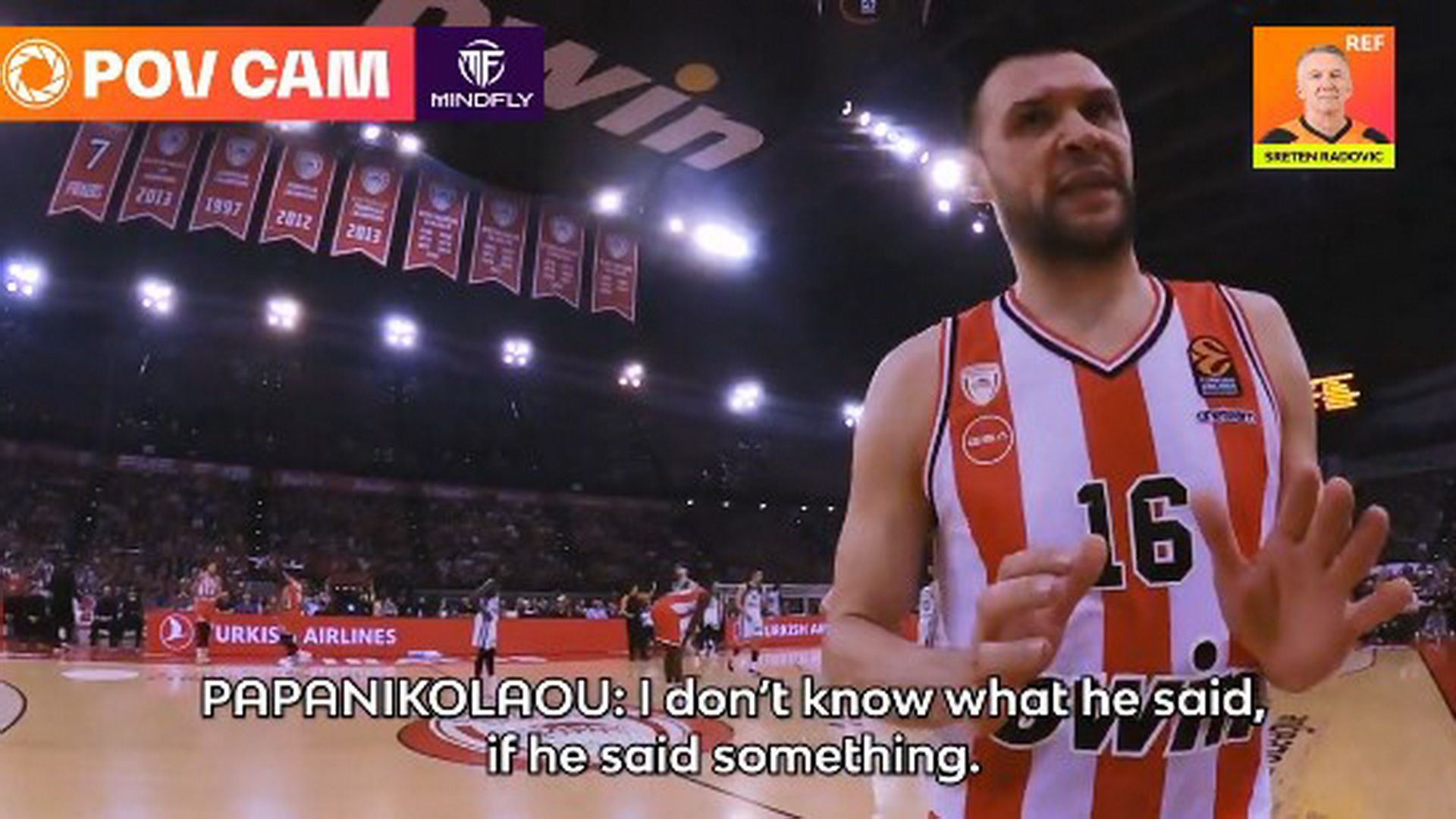 Ολόκληρη η μπασκετική Ευρώπη είχε στραμμένο το βλέμμα της στο ΣΕΦ και το ντέρμπι ανάμεσα στον Ολυμπιακό με τον Παναθηναϊκό. Μάλιστα, η διοργανώτρια αρχή έδωσε στην δημοσιότητα βίντεο από την κάμερα που ε΄ίχε πάνω του ο πρώτος διαιτητής της αναμέτρησης, Σρέντεν Ράντοβιτς, με τα πλάνα να είναι χαρακτηριστικά.