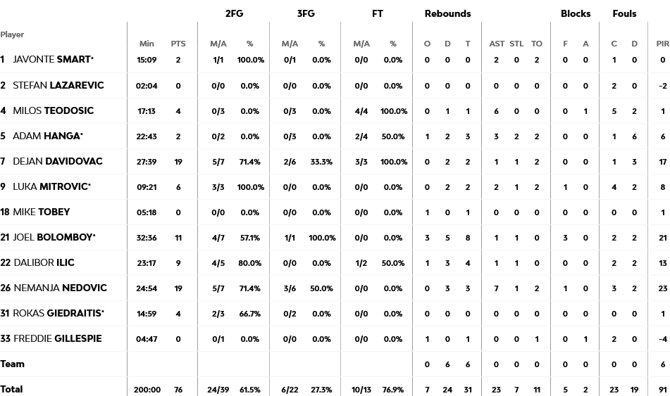 Ξεχώρισαν: Σαρωτικός για ακόμα ένα ματς ο Λεσόρ με 19 πόντους, έξι ριμπάουντ, τέσσερις ασίστ και τρία κλεψίματα, με τον Μήτογλου να έχει 17 πόντους και εννιά ριμπάουντ και τον Ναν 15 πόντους. Για τον Αστέρα, Νέντοβιτς και Νταβίντοβατς είχαν από 19 πόντους έκαστος.