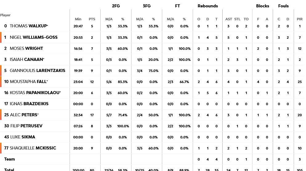 Η μεγαλύτερη διαφορά: +16 για τον Ολυμπιακό (80-64) στο 40’.