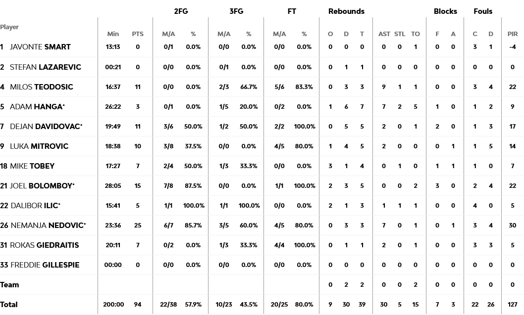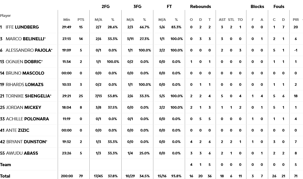 Από τους Σέρβους ξεχώρισαν οι Νέντοβιτς με 25 πόντους και 7 ασσίστ , ενώ από πλευράς Ιταλών και ο Σενγκέλια είχε 25 πόντους αλλά ήταν κυριολεκτικά μόνος