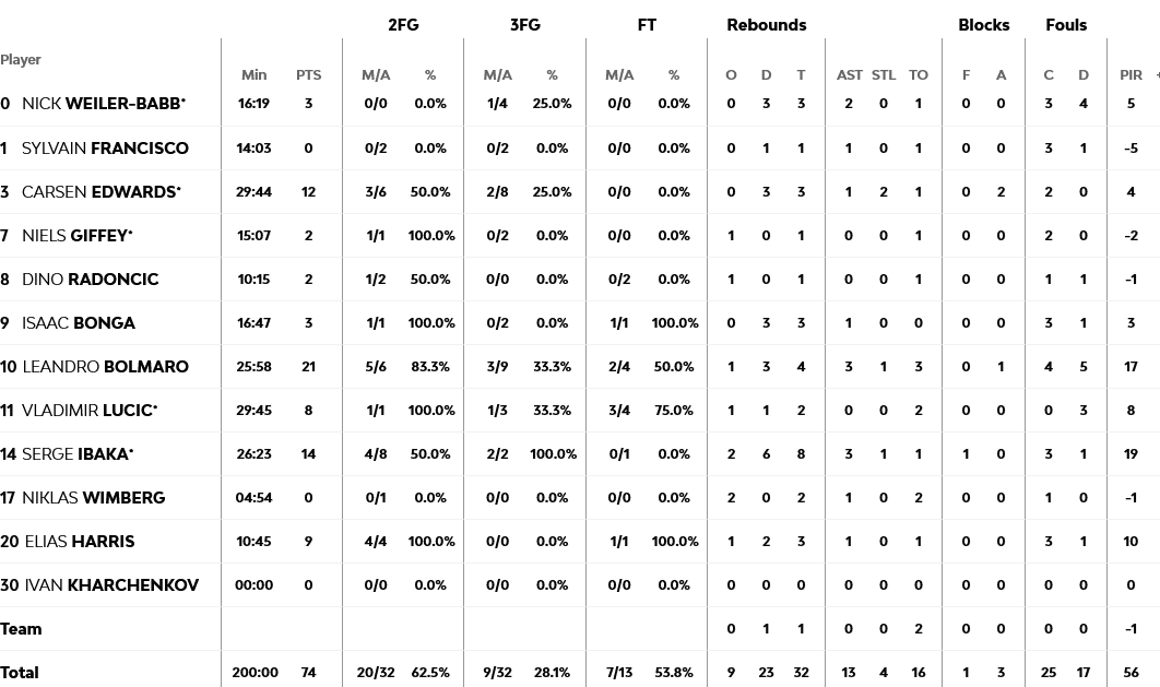 Ο Ριβέρο με 17 πόντους ήταν ο πρώτος σκόρερ της Μακάμπι, με τον Μπάλντγουιν να έχει 15, ενώ για την Μπάγερν, ο Μπολμάρο είχε 21 πόντους και ο Ιμπάκα 14.
