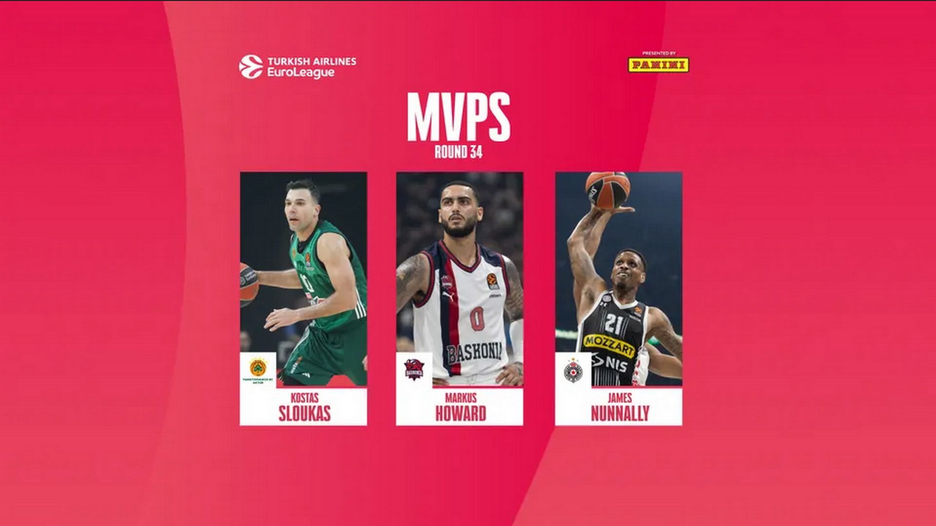Ούτε ένας, ούτε δύο, αλλά τρεις παίκτες, οι Κώστας Σλούκας, Μάρκους Χάουαρντ και Τζέιμς Νάναλι, μοιράστηκαν το βραβείο του MVP της 34ης και τελευταίας αγωνιστικής της Euroleague.
