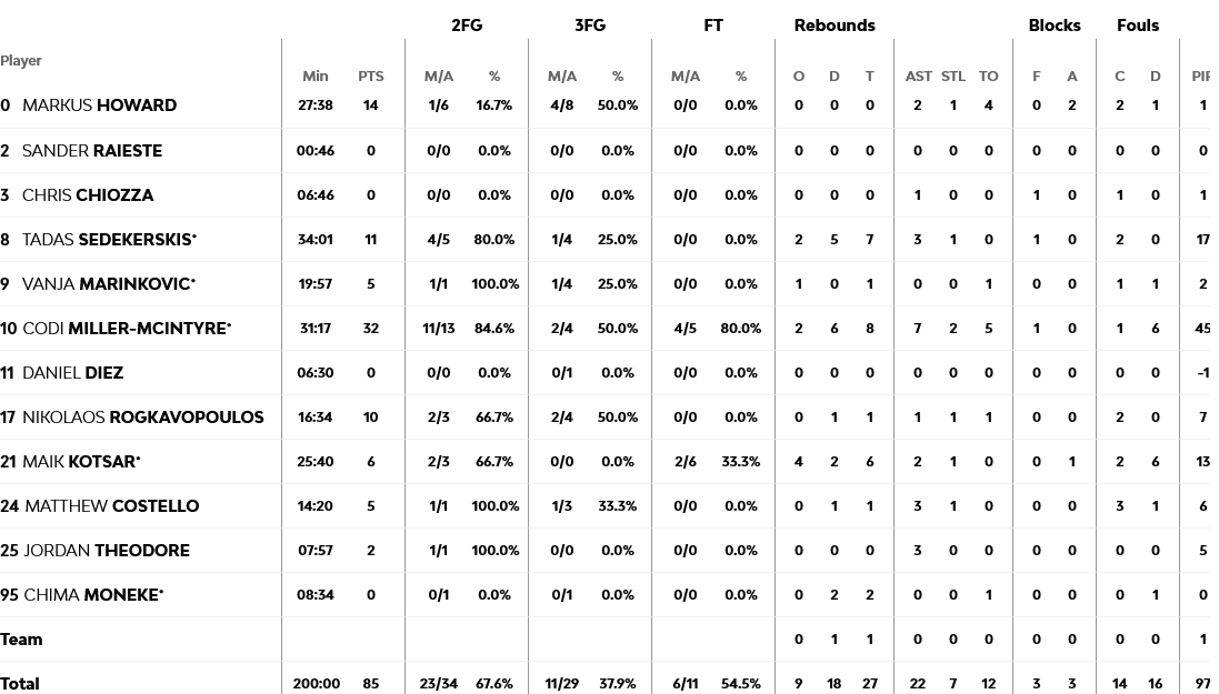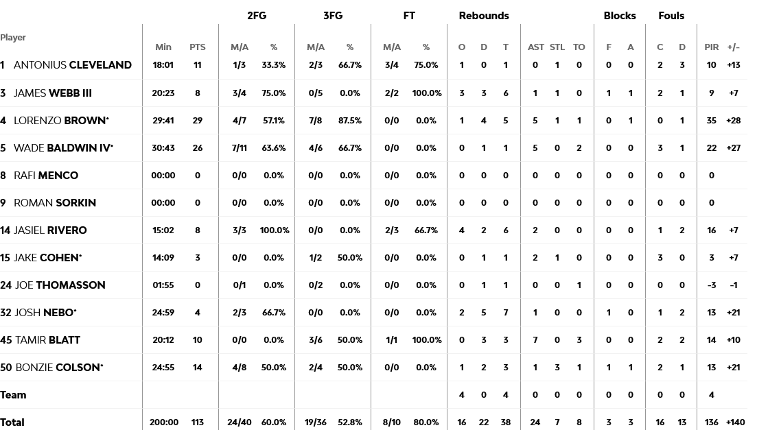 Απίστευτη εμφάνιση από τον Λορένζο Μπράουν, με τον πολιτογραφημένο Ισπανό γκαρντ να τελειώνει το παιχνίδι με 29 πόντους, πέντε ριμπάουντ και ισάριθμες ασίστ. Από κοντά και ο Μπάλντγουιν με 26 πόντους, ενώ ο Κόλσον είχε 14.