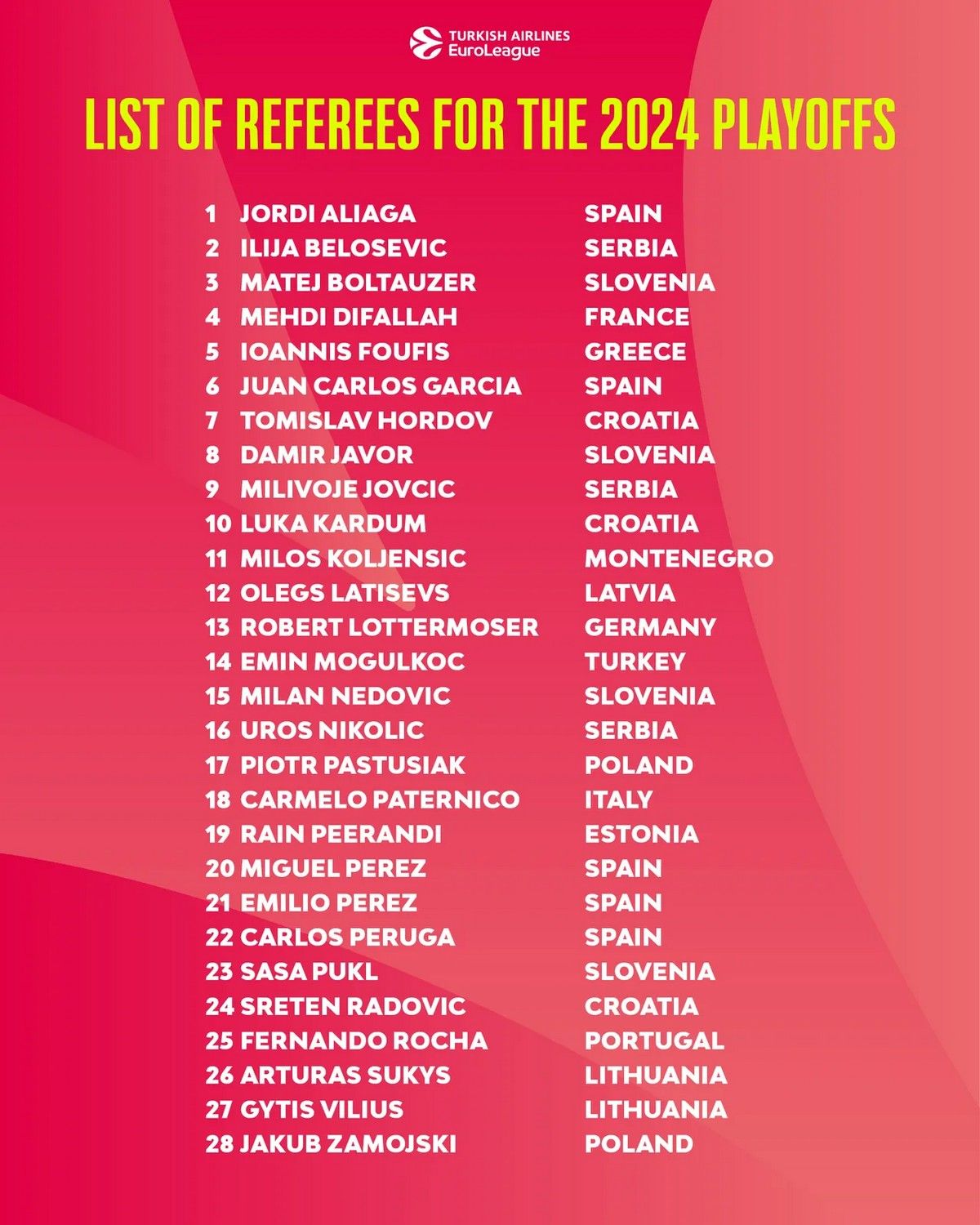 Ο Φούφης είναι ο μοναδικός εκπρόσωπος της ελληνικής διαιτησίας στα Play Offs, ενώ αξίζει να σημειωθεί πως στην 28μελή λίστα της Euroleague δεν υπάρχει καμία γυναίκα.