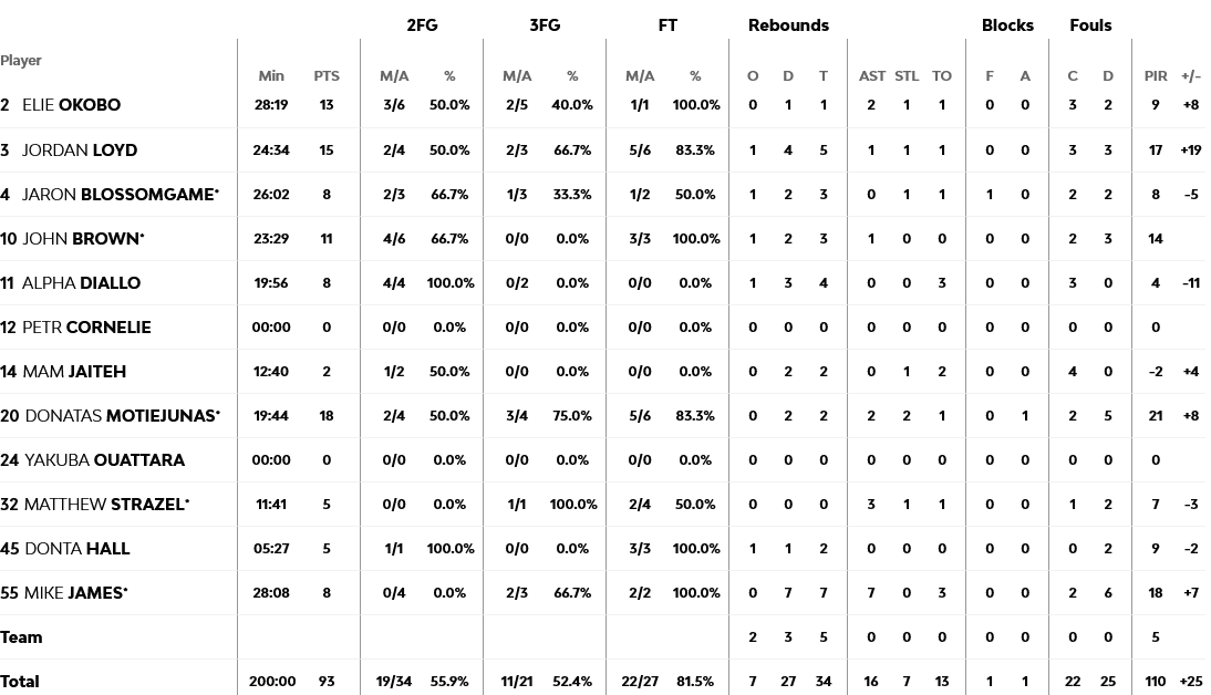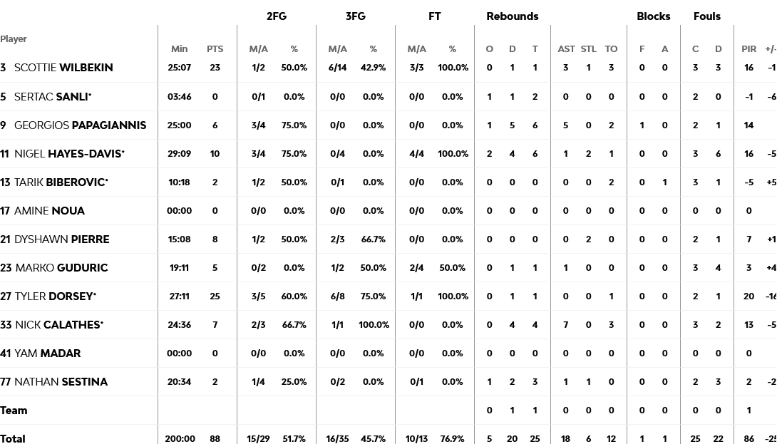 Σπουδαίο παιχνίδι για τους νικητές έκανε ο Μοτεγιούνας με 18 πόντους και ακολούθησε ο Λόιντ με 15. Ενώ για τους Τούρκους ο Ντόρσει είχε 25 πόντους με 6 τρίποντα και ακολούθησε ο Γουίλμπεκιν με 23.