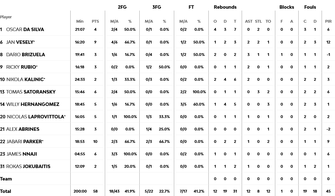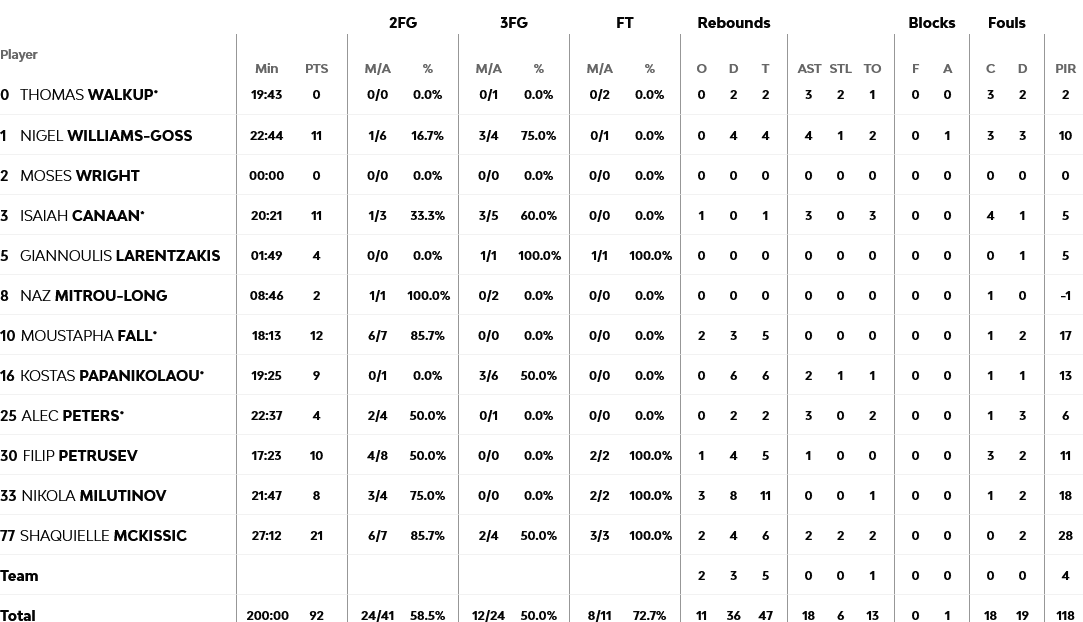 Ξεχώρισαν: Φαλ και Μιλουτίνοβ… κατάπιαν την front line των Καταλανών, με τον Γάλλο να έχει 12 πόντους και πέντε ριμπάουντ και τον Σέρβο οκτώ πόντους και 11 ριμπάουντ. Από 11 είχαν Γκος και Κάνααν, ενώ ο Παπανικολάου επέστρεψε στην δράση με εννέα πόντους και έξι ριμπάουντ. Για την Μπαρτσελόνα, ο μόνος που διασώθηκε ήταν ο Πάρκερ με 10 πόντους.