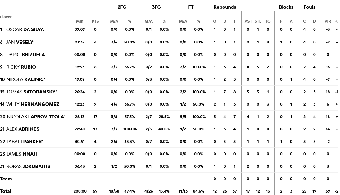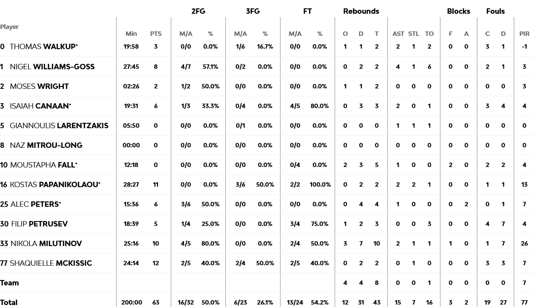 Τα δεκάλεπτα: 12-9, 27-25, 40-40, 59-63