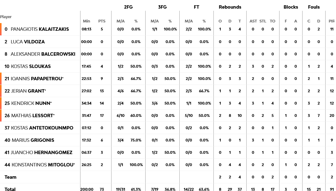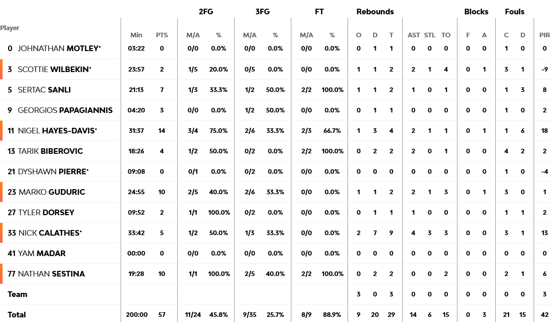 Ξεχώρισαν: Ναν και Γκραντ είχαν 14 και 13 πόντους αντίστοιχα, ενώ για την Φενέρμπαχτσε, ο μόνος που… επιβίωσε από το τουρκικό «ναυάγιο» ήταν ο Χέιζ – Ντέιβις με 14 πόντους.