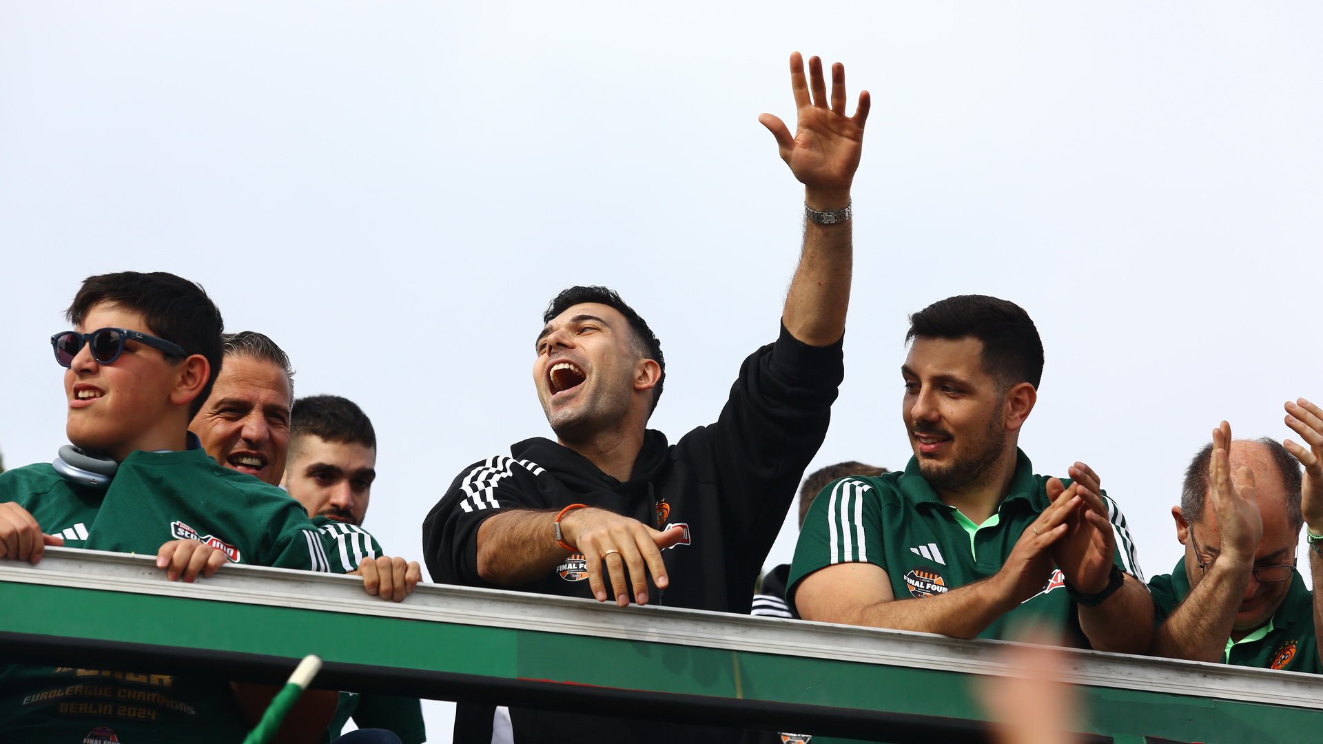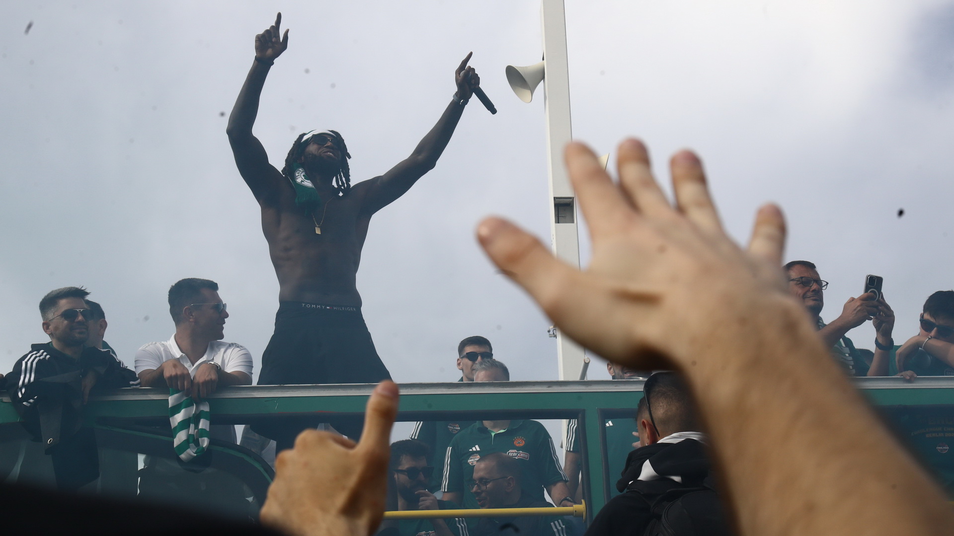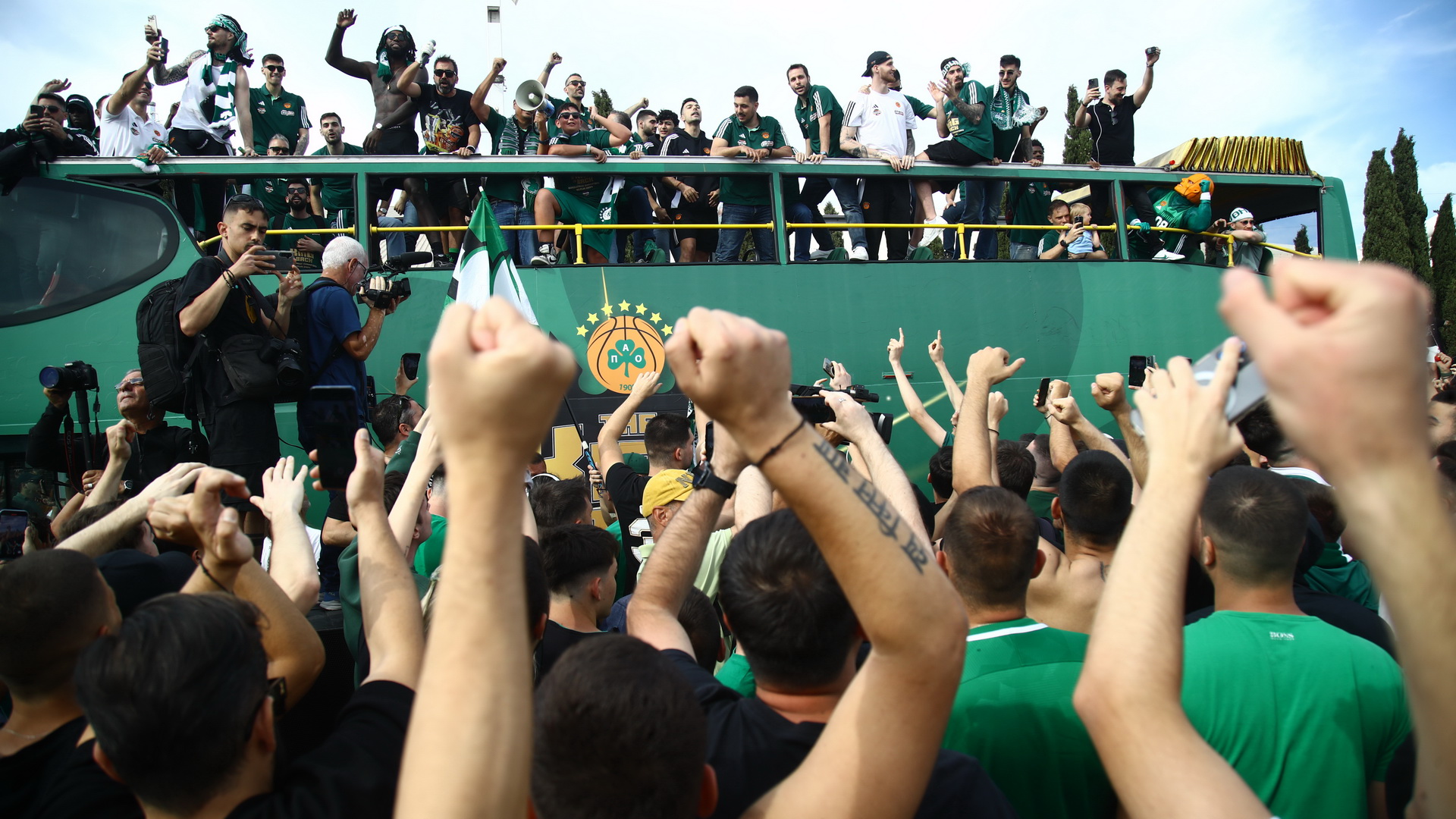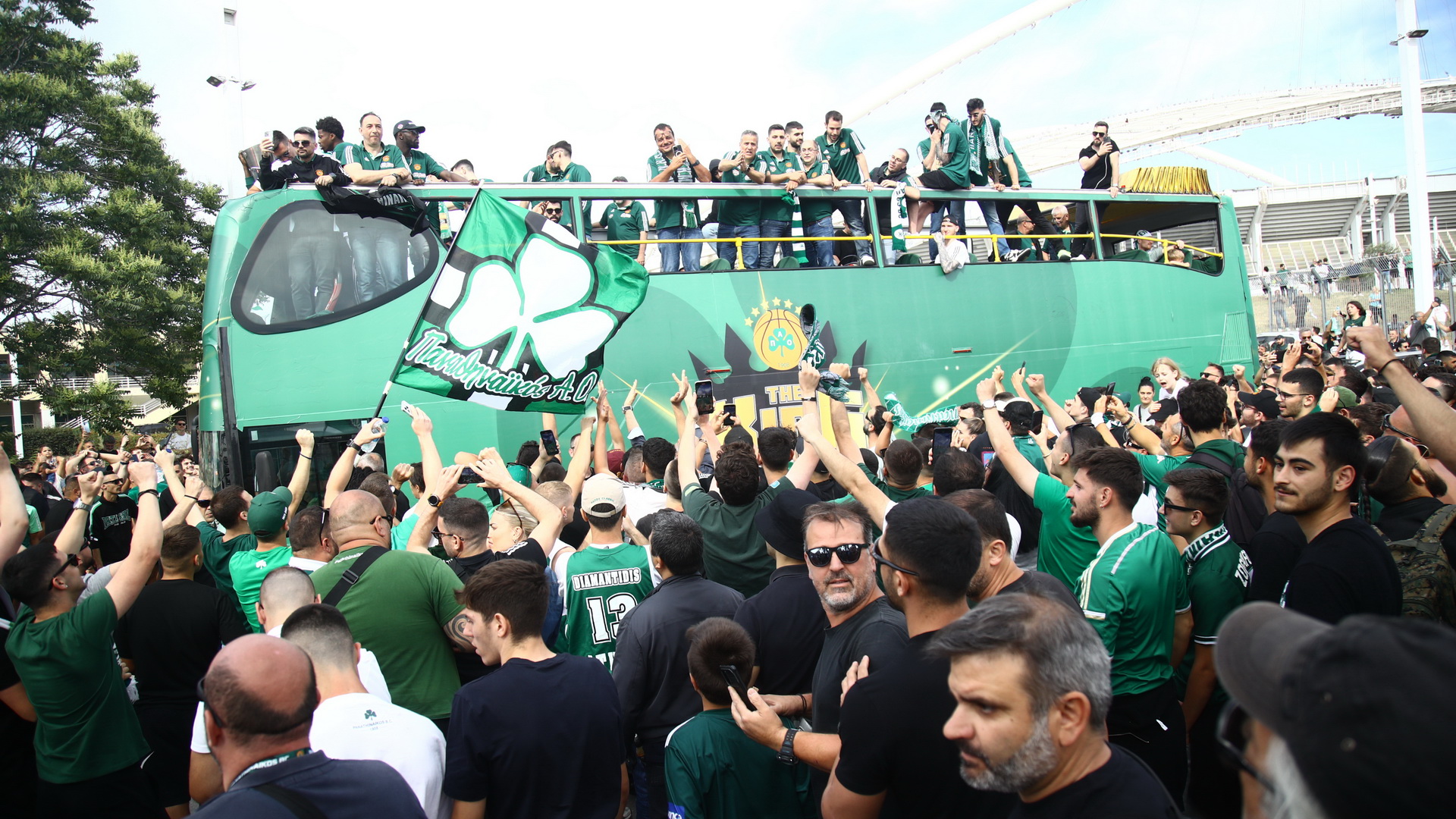 Το πούλμαν της αποστολής το Παναθηναϊκού έφτασε μέσα σε αποθέωση στο ΟΑΚΑ, με τους παίκτες του «τριφυλλιού» να απευθύνονται, δια μικροφώνου, στους χιλιάδες κόσμου που είχε μαζευτεί.