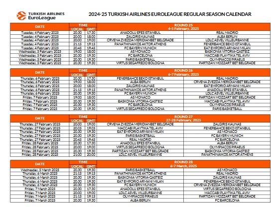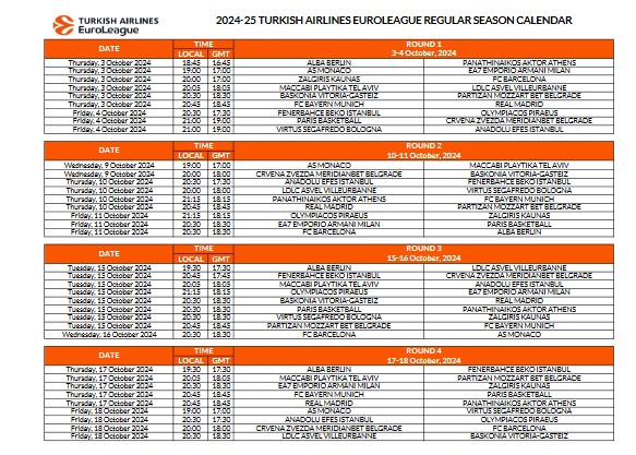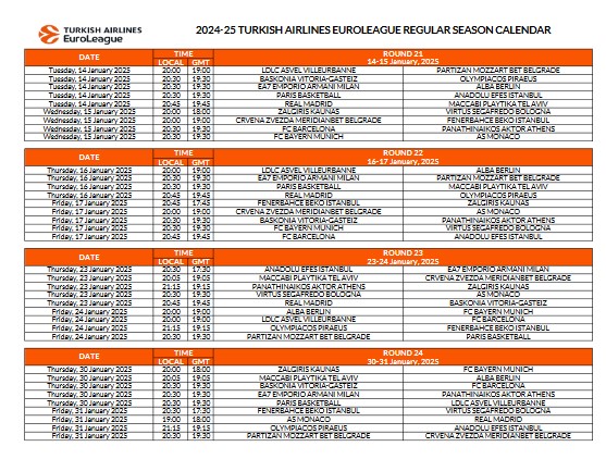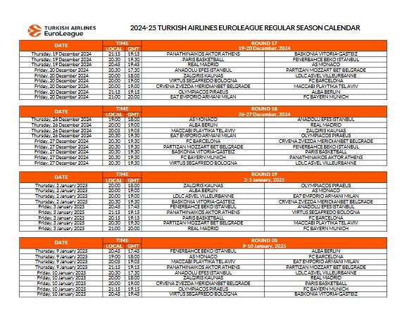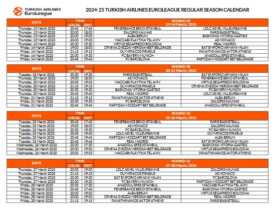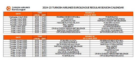Οι «ερυθρόλευκοι» δίνουν το πρώτο εντός έδρας παιχνίδι τους την 2η αγωνιστική απέναντι στην Ζαλγκίρις, ενώ ολοκληρώνουν τις υποχρεώσεις τους για την regular season και πάλι εντός έδρας, απέναντι στην Μακάμπι.