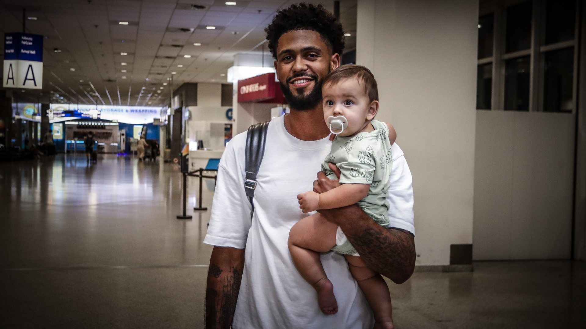 Ολυμπιακός - Με το μωρό του στην αγκαλιά έφτασε στην Ελλάδα ο Ντόρσεϊ (pic)