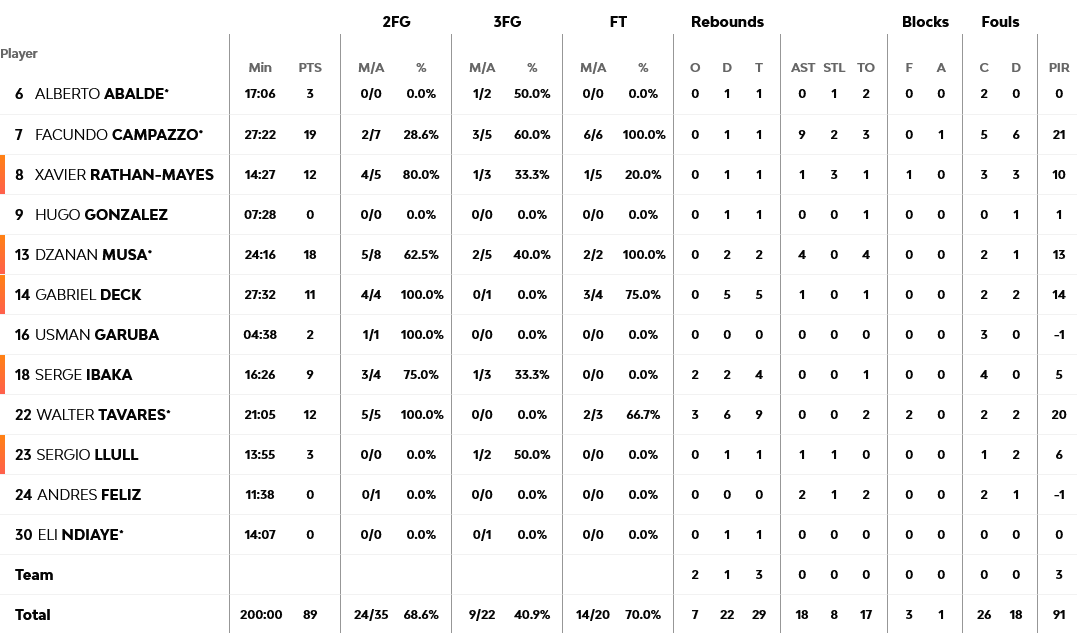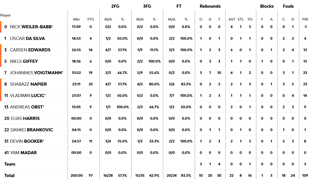 Για τους Βαυαρούς καταπληκτικός ήταν ο Νέπιερ με 25 πόντους και ακολούθησε ο Βόιτμαν με 19 πόντους και 10 ριμπάουντ. Για την Ρεάλ 19 πόντους και 9 ασσίστ είχε ο Καμπάτσο και ακολούθησε ο Μούσα με 18 πόντους.