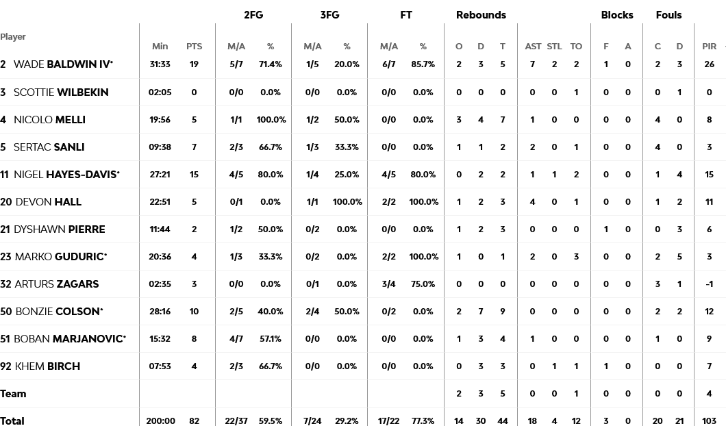 Ξεχώρισαν: 15 πόντους σημείωσε ο Χέιζ – Ντέιβις, με τον Κόλσον να… πληγώνει τον Ολυμπιακό με 10 πόντους και εννέα ριμπάουντ. Για τους Πειραιώτες, ο Ράιτ είχε 15 πόντους και επτά ριμπάουντ και ο ΜακΚίσικ 13 πόντους.