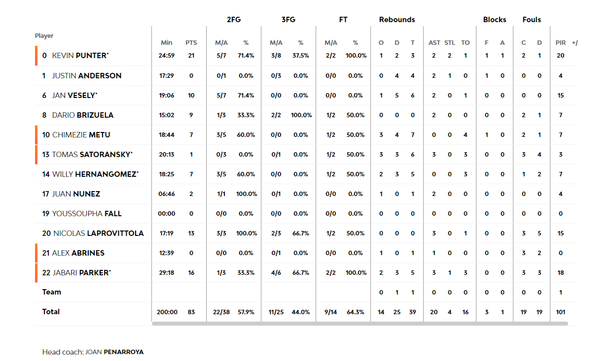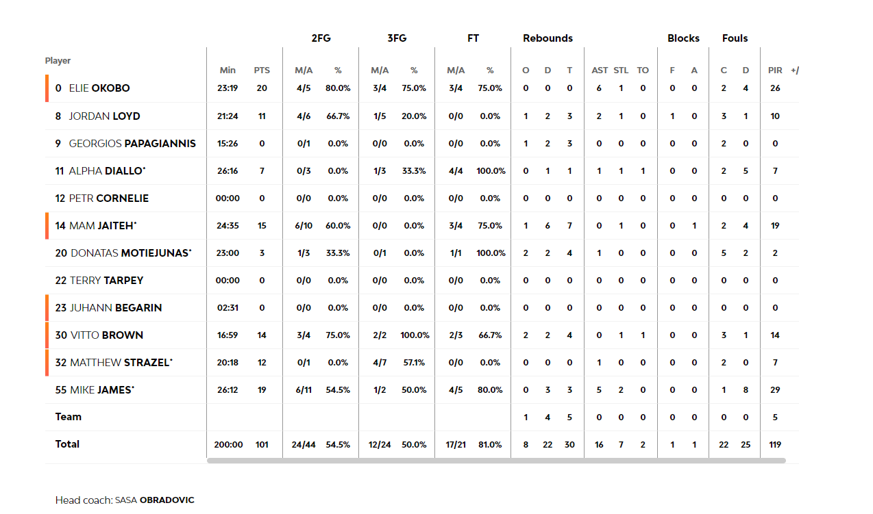 Κέβιν Πάντερ με 21 και Τζαμπάρι Πάρκερ με 16 πόντους, ήταν οι διακριθέντες για τους "μπλαουγκράνα", ενώ για την Μονακό ξεχώρισε ο Έλι Οκόμπο με 13 πόντους και 7 ασσίστ και ο Άλφα Ντιαλό με 12 πόντους και 6 ριμπάουντ