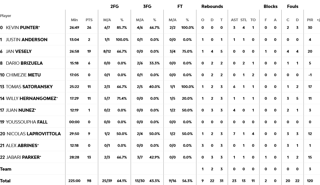 Απίστευτος Πάντερ με 26 πόντους και τεράστια καλάθια, τόσο στο φινάλε της κανονικής περιόδου, όσο και της παράτασης. 19 πόντους πρόσθεσε ο Βέσελι και 13 ο Πάρκερ, ενώ από πλευράς Αστέρα, ο Ντος Σάντος είχε 23 πόντους και ο Κάλινιτς 19.