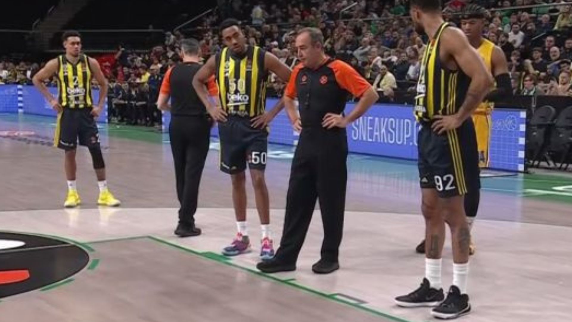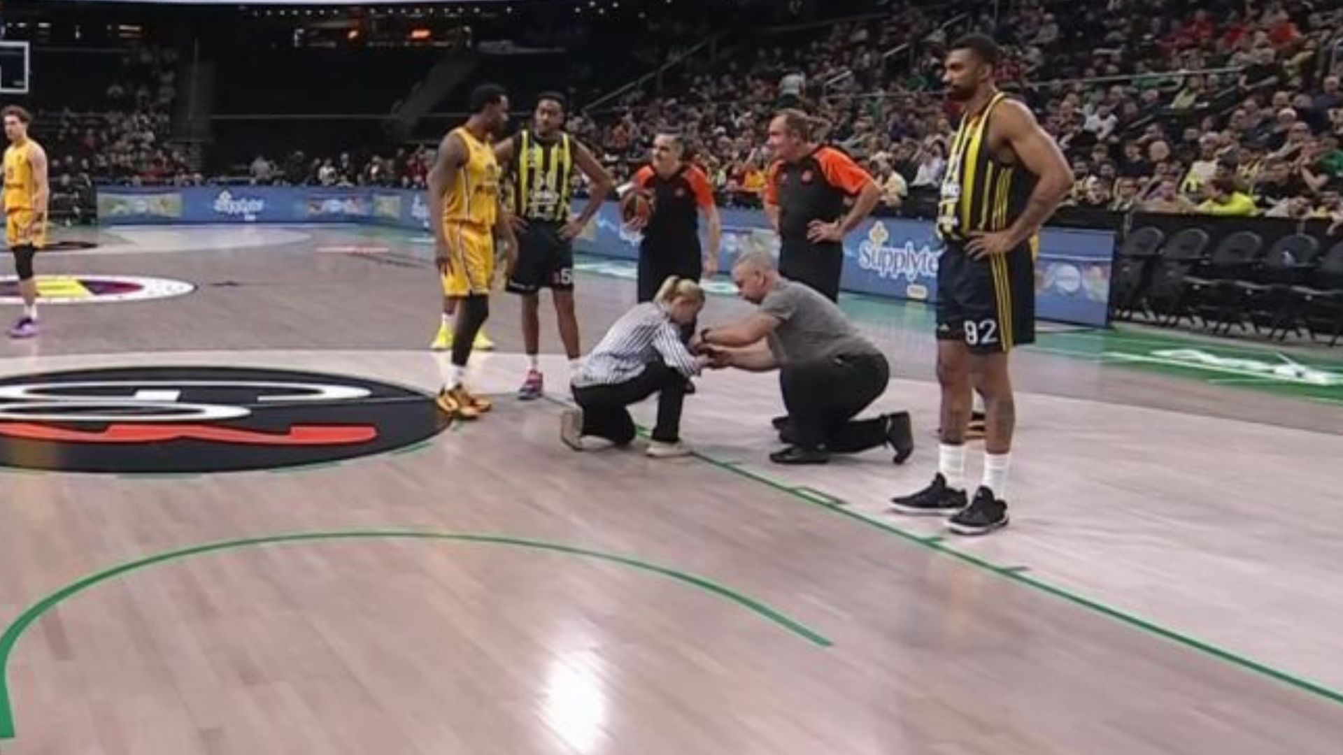 Απρόοπτο στον αγώνα μεταξύ Φενερμπαχτσέ και Μακάμπι Τελ Αβίβ στα πλαίσια της 6ης αγωνιστικής της Euroleague, καθώς τα σημάδια που δείχνουν στους παίκτες που πρέπει να στέκονται όταν εκτελούνται ελεύθερες βολές.
