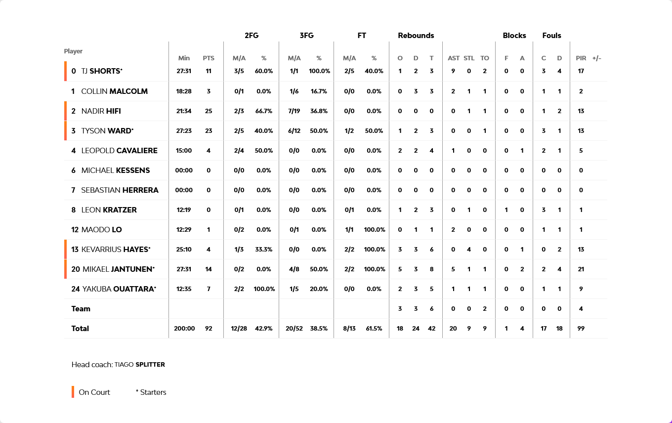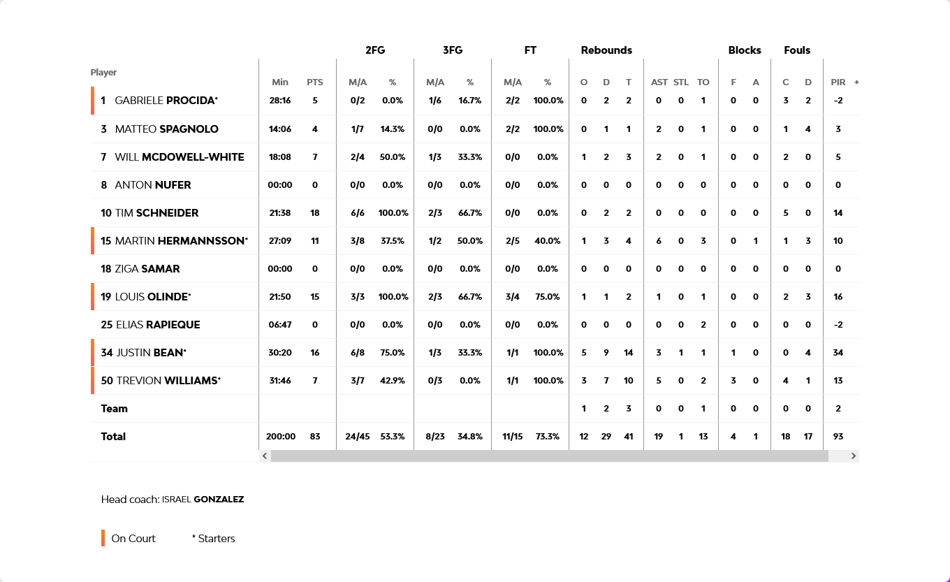 Τα δεκάλεπτα: 26-16, 44-37, 63-65, 83-92