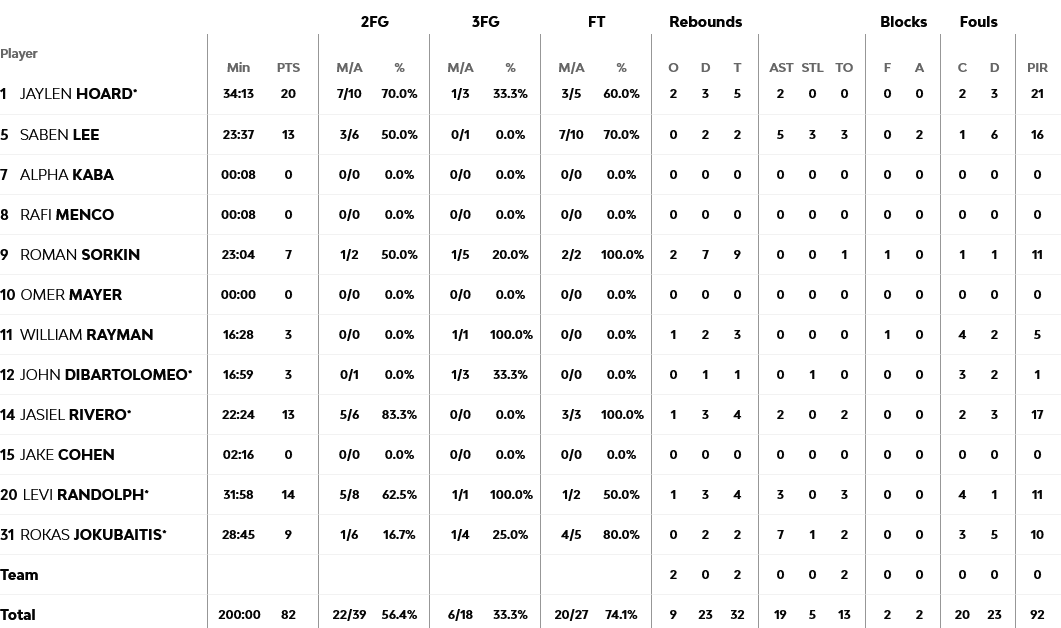 Ο Χέιζ - Ντέιβις με 20 πόντους ήταν ο πρ΄ώτος σκόρερ της Φενέρ, που είχε τον Χαλ με 16 πόντους και τον Μπιμπέροβιτς με 15. Για την Μακάμπι, 20 πόντους πέτυχε ο Χόαρντ και 14 ο Ράντολφ.