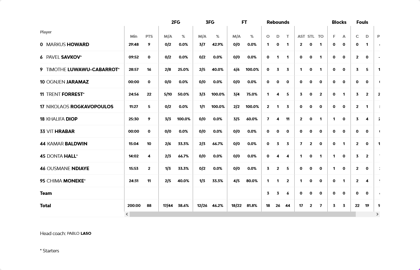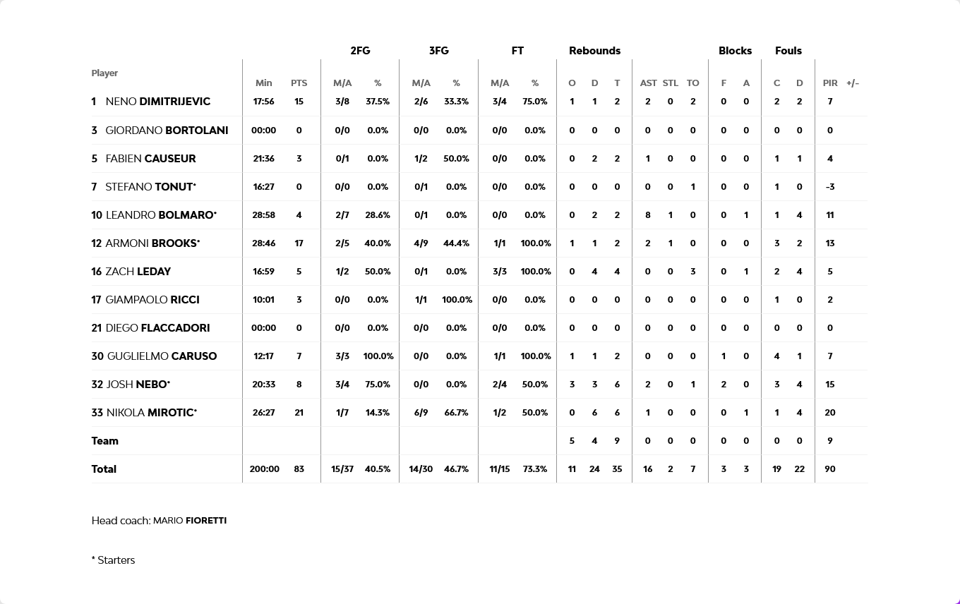 Η Μπασκόνια αν και δυσκολεύτηκε αρκετά στο τέταρτο δεκάλεπτο, άντεξε στην πίεση της Αρμάνι και πήρε τη νίκη με 88-83, έχοντας ως πρωταγωνιστή τον Τρεντ Φόρεστ.