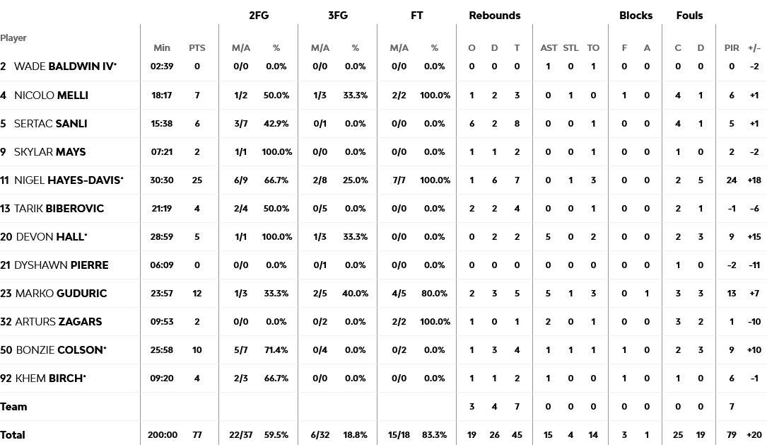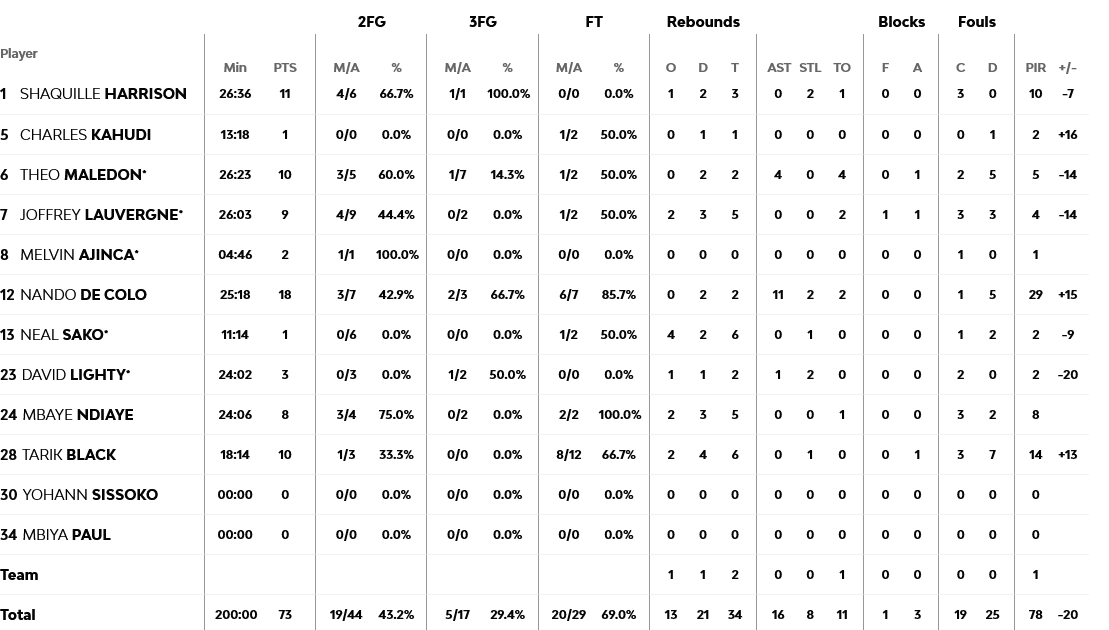 Για τους Τούρκους ξεχώρισε ο Χέιζ-Ντέιβις με 25 πόντους και 7 ριμπάουντ και ακολούθησε ο Γκούντουριτς με 12. Για τους Γάλλους double double έκανε ο Ντε Κολό με 18 πόντους και 11 ασσίστ.