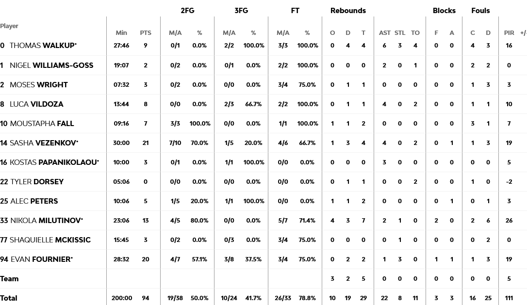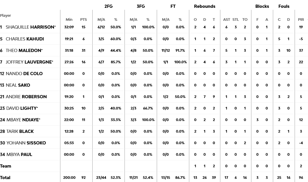 Ξεχώρισαν: 21 πόντους, αλλά με 0/2 βολές στο φινάλε, είχε ο Βεζένκοβ, με τον Φουρνιέ να προσθέτει 20, ενώ για την ASVEL, 15 πόντους πέτυχε ο Χάρισον.