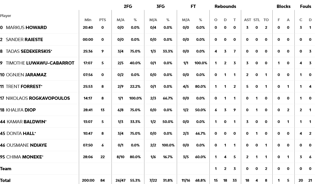 Για τους νικητές ξεχώρισαν οι Μπράιαντ με 20 πόντους , 8 ριμπάουντ και 6 ασσίστ και ακολούθησε ο Τόμπσον με 18 πόντους. Για τους Ισπανούς ο Μονέκε είχε 22 πόντους και ο Ντιοπ 13.