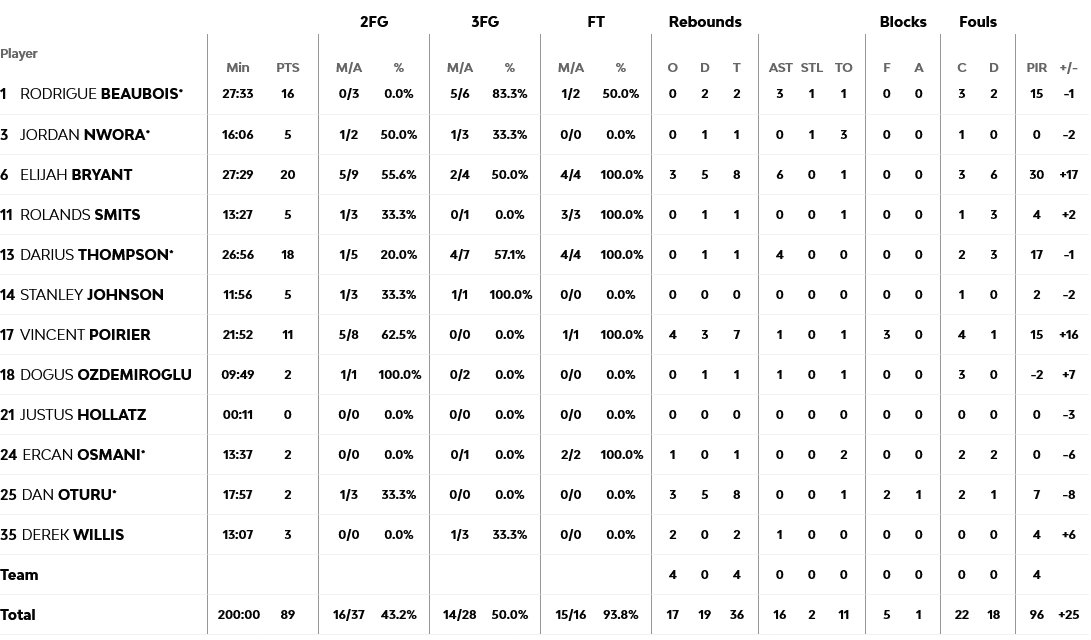 Με τον Ελάιζα Μπράιαντ να πετυχαίνει 20 πόντους και τον Ντάριους Τόμπσον να προσθέτει 18, η Αναντολού Εφές πέρασε νικηφόρα από την Βιτόρια, επικρατώντας της Μπασκόνια με 89-84. Στο 5-4 ανέβηκαν οι Τούρκοι, στο 4-5 υποχώρησαν οι Βάσκοι.