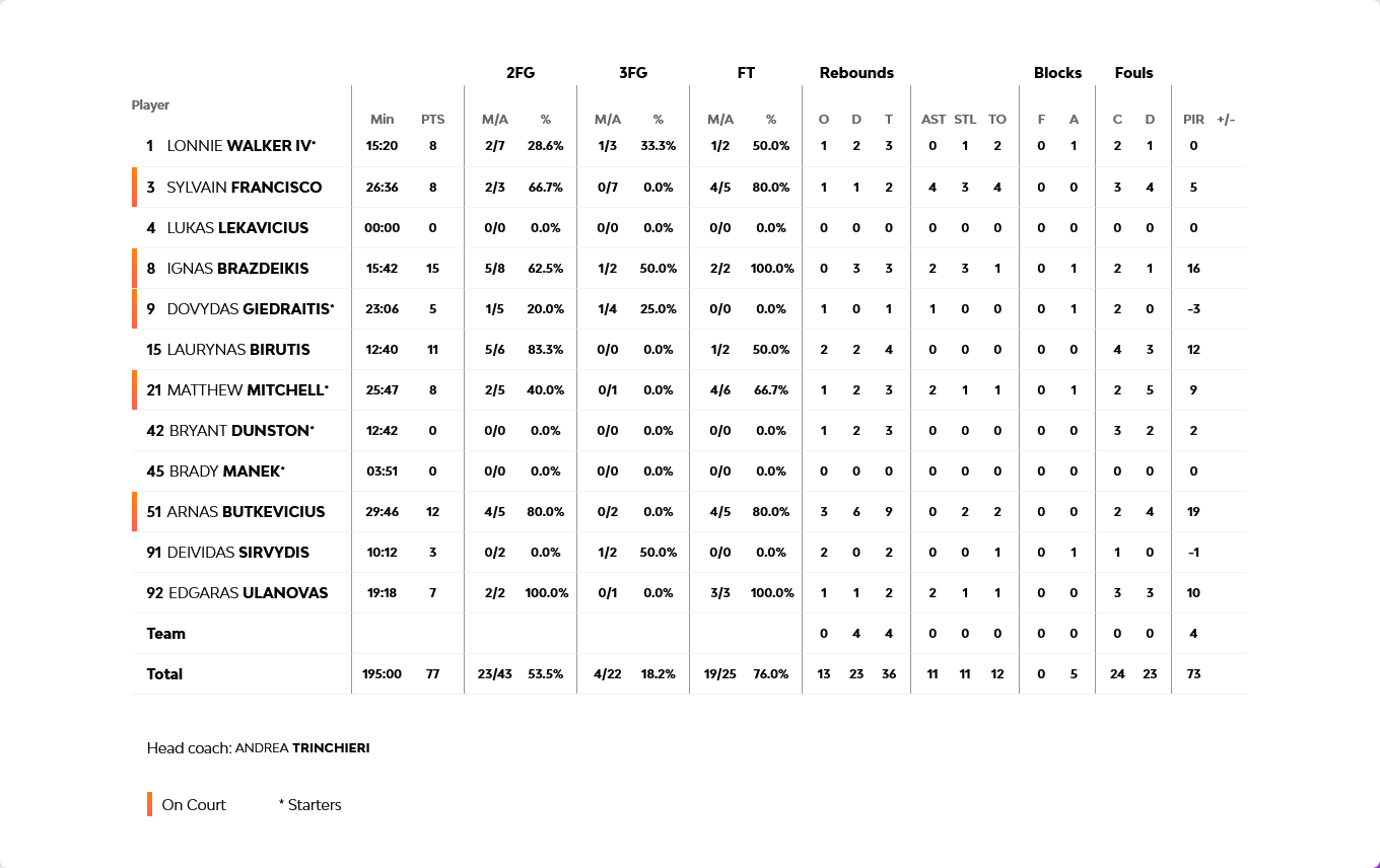 Ξεχώρισαν: Ο Μάλκολμ με 17 πόντους ήταν συμπαραστάτης του Σορτς, από την Ζαλγκίρις διακρίθηκαν οι Μπραζντέικις (15π) και Μπουτκεβίτσιους (12π, 9ρ)