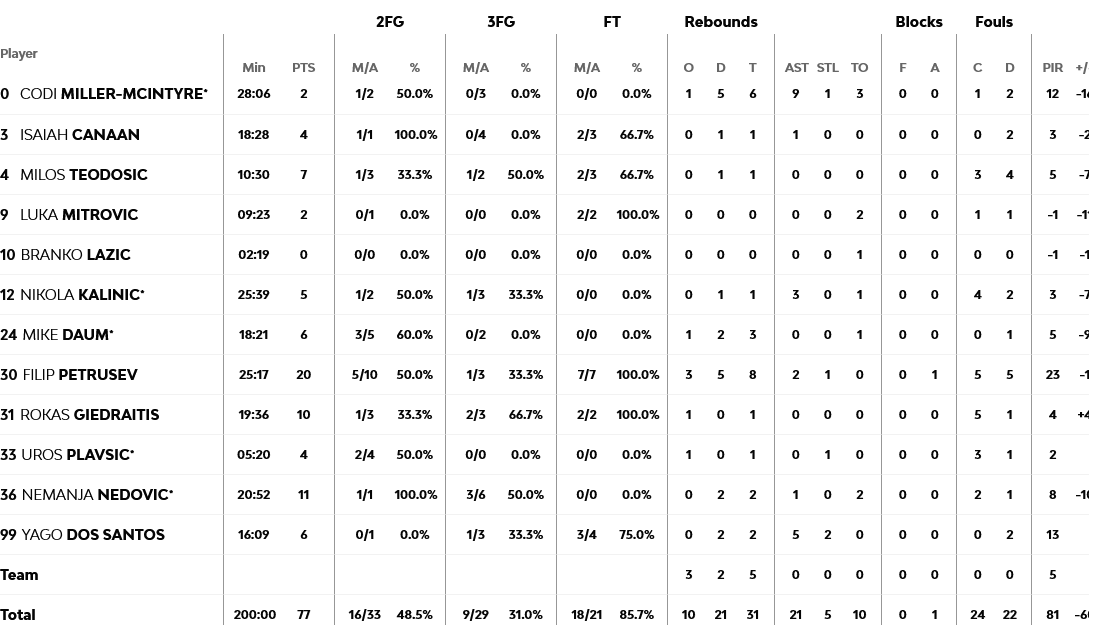 Την έδρα του Ερυθρού άλωσε η Παρτίζαν που κέρδισε 89-77 για την 11η αγωνιστική της Euroleague. Η ομάδα του Ζοτς κέρδισε τον Ερυθρό μετά από 8 συνεχόμενες νίκες των ερυθρολεύκων στα μεταξύ τους ντέρμπι.