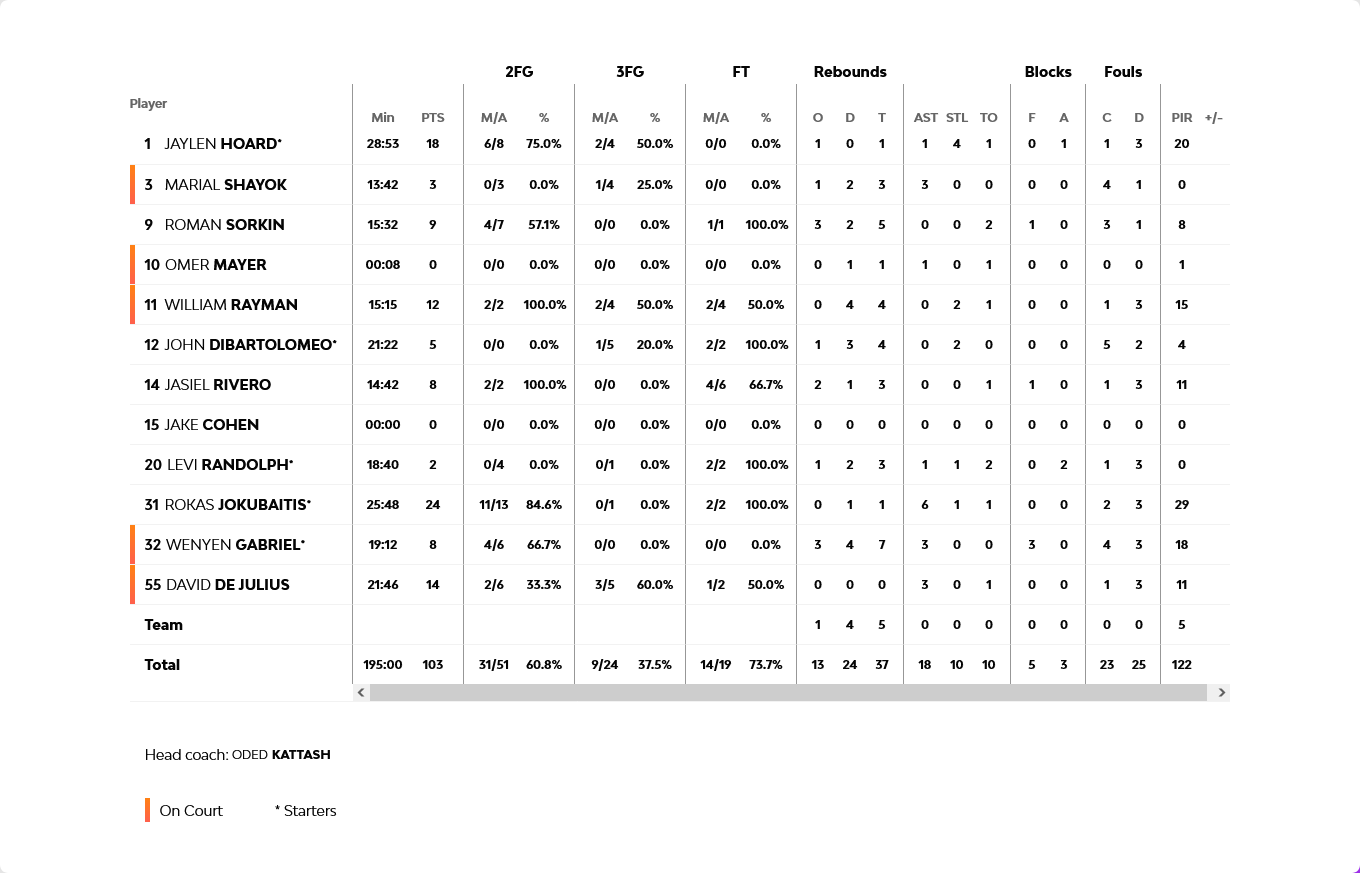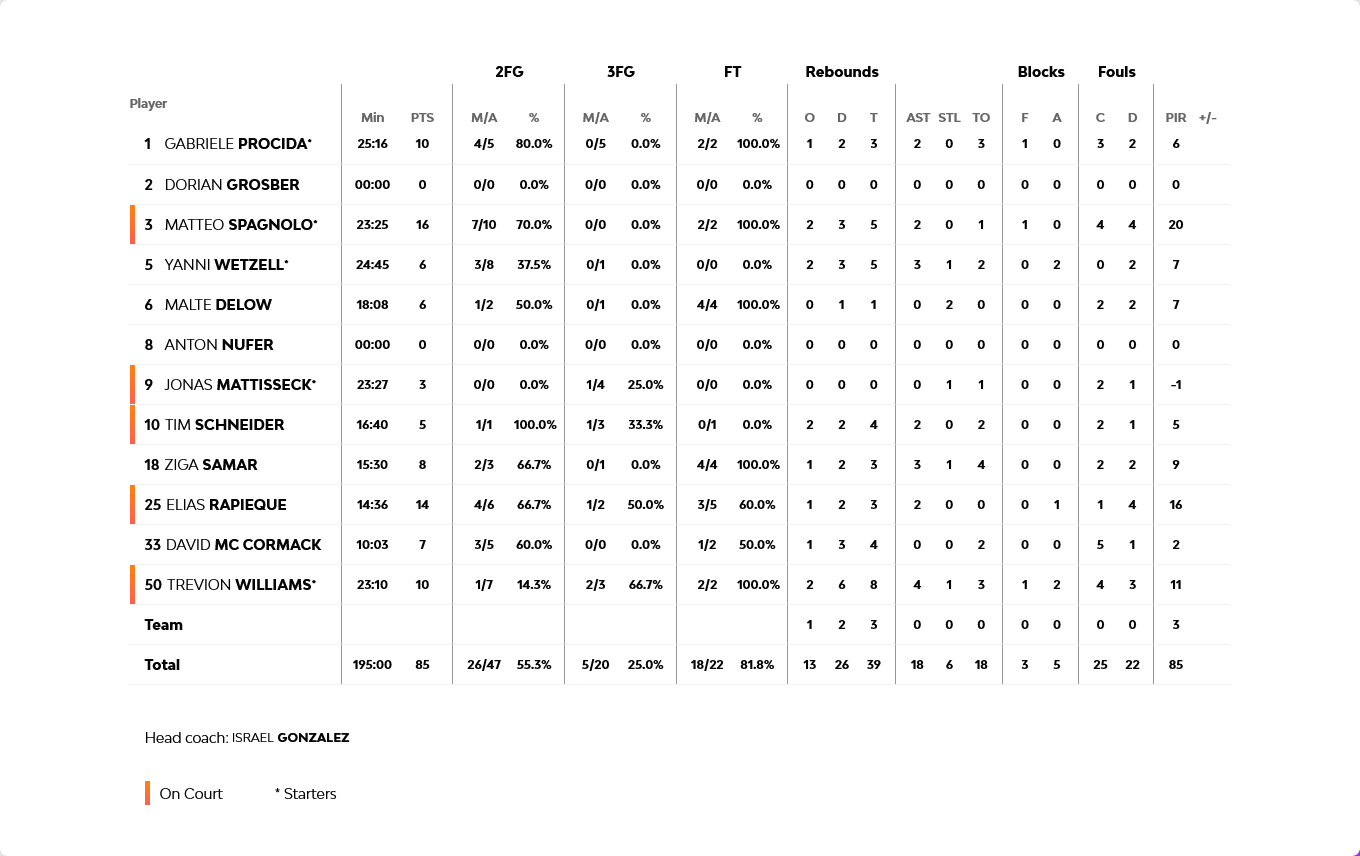 Κορυφαίος για την ομάδα του Κάτας ΄ηταν ο Γιοκουμπάιτις με 24 πόντους και 6 ασίστ, με συμπαραστάτες τους Χορντ και Ντε Τζούλιους που είχαν από 18 και 14 αντίστοιχα, ενώ από την Άλμπα ξεχώρισαν οι Σπανιόλο και Ραπίκ με 16 και 14.