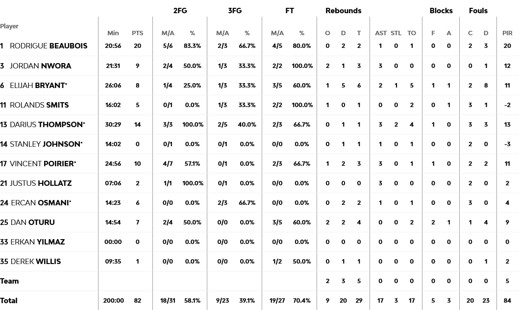 Για τους Γάλλους ξεχώρισαν οι Λοβέρν με 18 πόντους και ακολούθησαν με 17 έκαστος οι Μαλεντόν και Ντε Κολό. Για τους Τούρκους ο Μπομπουά ήταν πρώτος σκόρερ με 20 πόντους.