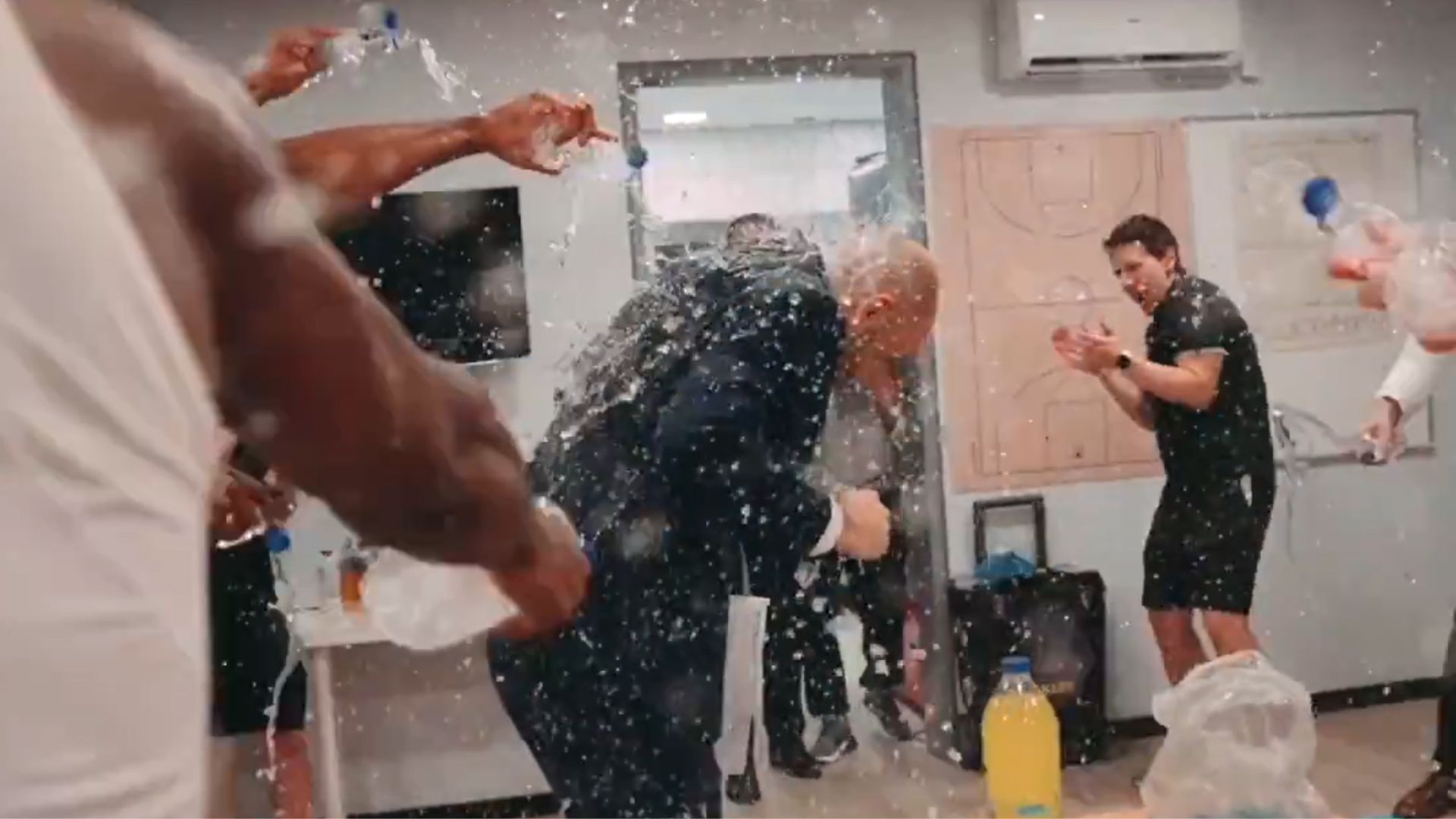 Οι παίκτες της Μονακό υποδέχθηκαν τον κόουτς Σπανούλη με... μπουγέλωμα στα αποδυτήρια του ΟΑΚΑ, αφού μαζί πανηγ΄υρισαν τη πρώτη νίκη του έλληνα τεχνικού στο πάγκο της ομάδας, ενώ αργότερα ο 42χρονος συνεχάρη έναν-έναν τους αθλητές του για την εμφάνισή τους και τη νοοτροπία που έδειξαν απέναντι στον Παναθηναϊκό.