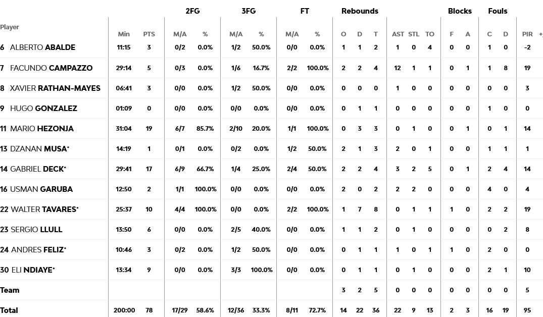 Ακόμα ένα σπουδαίο παιχνίδι από τον Μαλεντόν, με 23 πόντους και επτά ασίστ, με τον Λι να έχει 13 πόντους, ανάμεσα τους και το νικητήριο καλάθι, στο φινάλε της αναμέτρησης. Για την Ρεάλ, ο Χεζόνια είχε 19 πόντους και ο Ντεκ 17.
