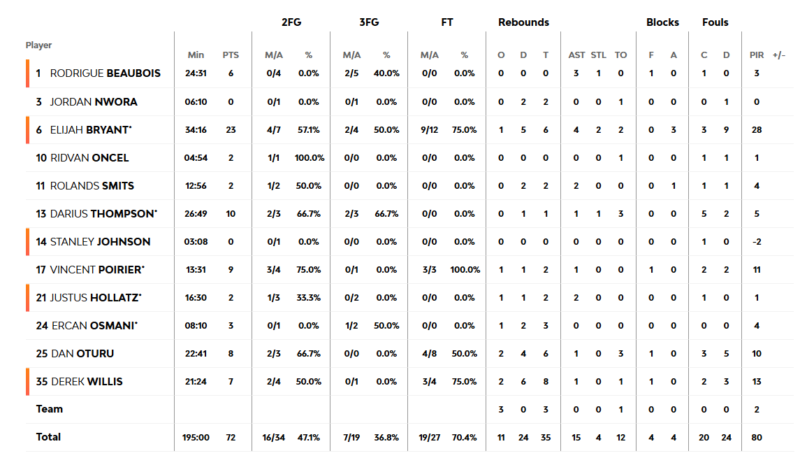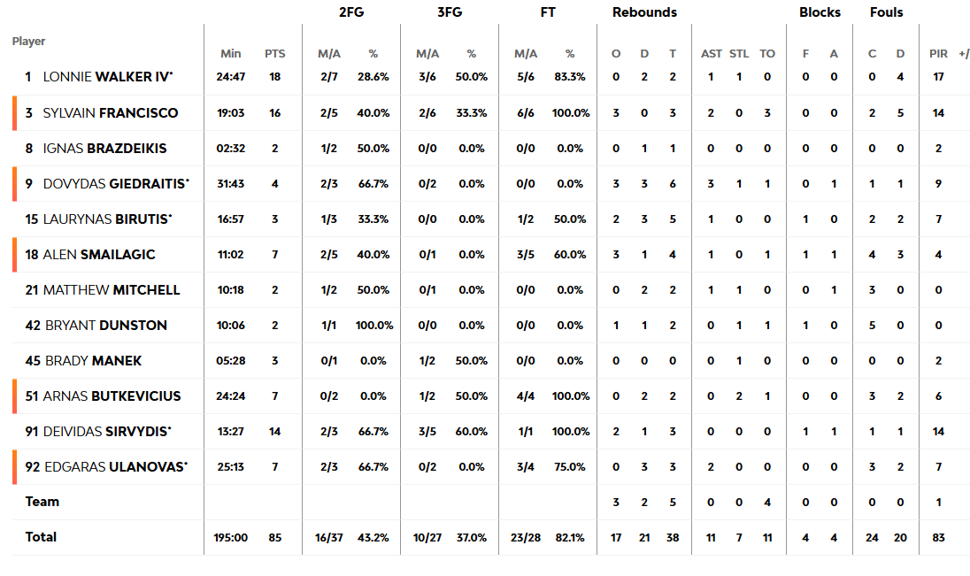 Πρωταγωνιστές των γηπεδούχων ήταν ο Γουόκερ με 18 πόντους και ο Φρανσίσκο με 16 πόντους. Για τους φιλοξενούμενους διασώθηκε ο εκπληκτικός Μπράιαντ με 23 πόντους και 6 ριμπάουντ και ο Γουίλις με 7 πόντους και 8 ριμπάουντ.