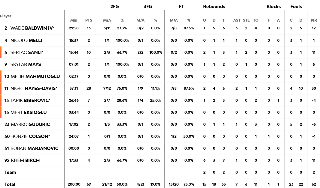 Για τους γηπεδούχους ξεχώρισε ο Χέιζ Ντέιβις με 28 πόντους, ενώ για τους Μονεγάσκους καταπληκτικός ήταν ο Τζειμς με 21 πόντους και ο Οκόμπο με 19
