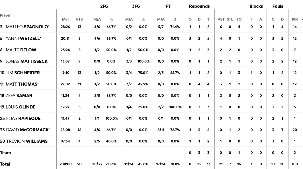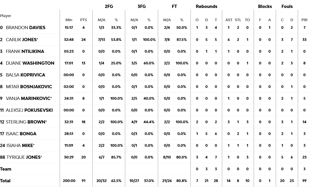Εξαιρετικός ο Καρλίκ Τζόουνς με 24 πόντους, ανάμεσα τους το καλάθι της νίκης, αλλά και πέντε ριμπάουντ με έξι ασίστ, με τον Ταϊρίκ Τζόουνς να έχει 20 πόντους και επτά ριμπάουντ και τον Στέρλινγκ Μπράουν να έχει 18 πόντους. Για την Άλμπα, ο ΜακΚόρμακ είχε 16 πόντους, αλλά και 2/4 βολές στα τελευταία δευτερόλεπτα, όταν η μπάλα… έκαιγε και ενώ μέχρι εκείνη την στιγμή είχε 6/7. Από 13 πόντους είχαν Σπανιόλο και Σνάιντερ και 11 ο Τόμας.