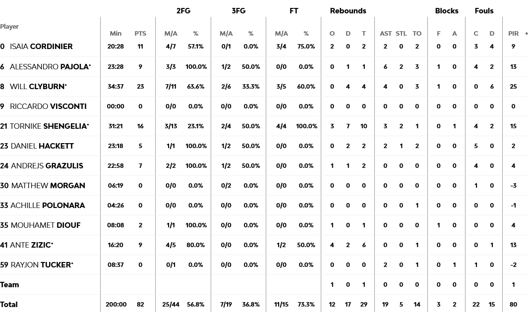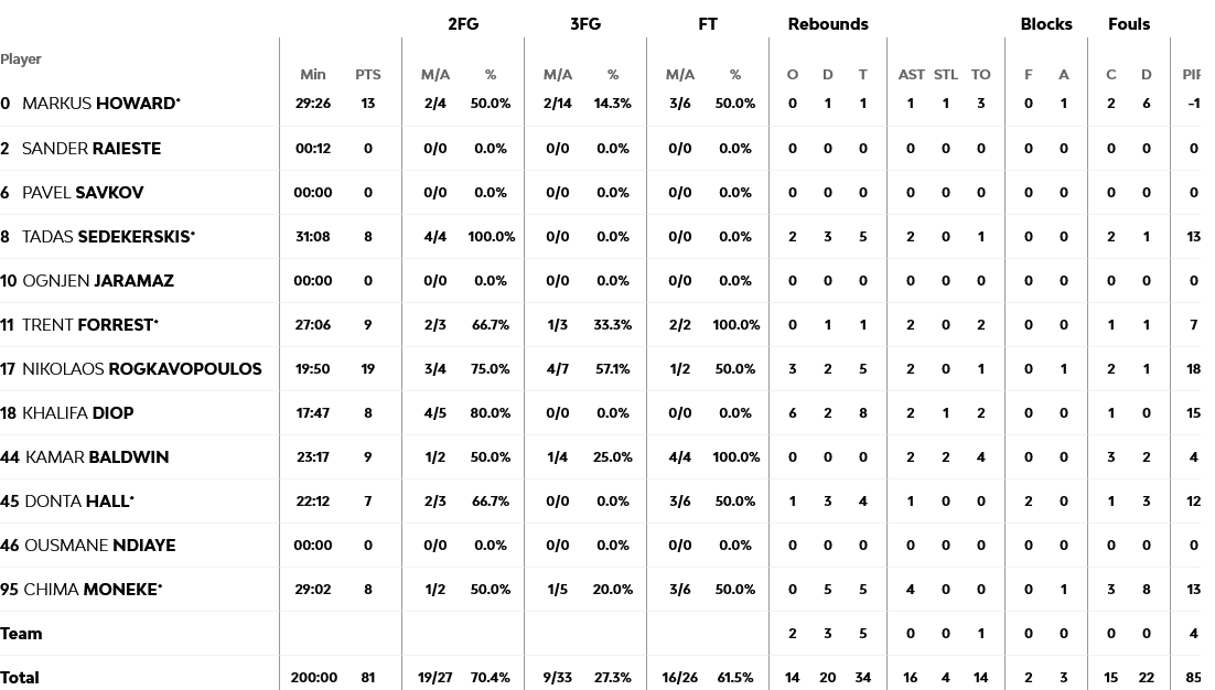 Για την Βίρτους, ο Κλάιμπερν τελείωσε το ματς με 23 πόντους, με τον Σενγκέλια να έχει 16 πόντους και 10 ριμπάουντ.