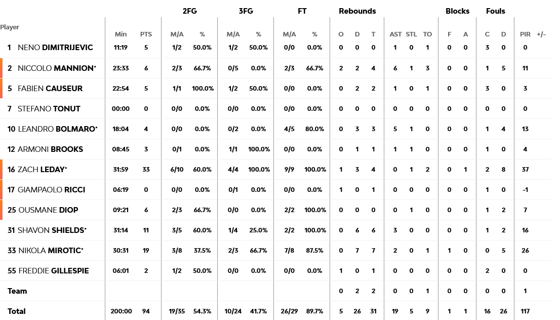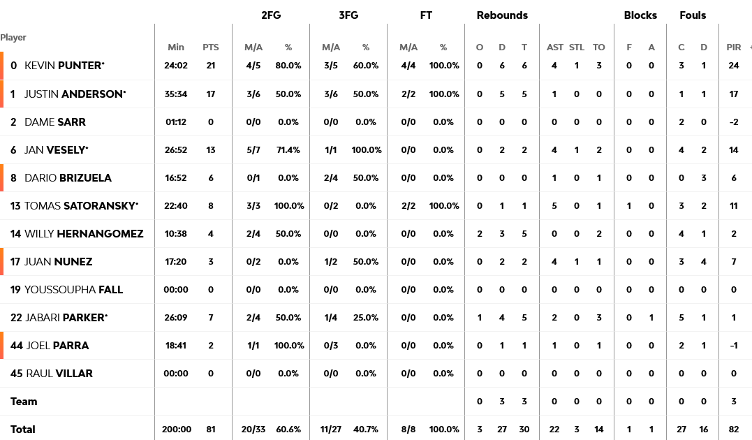 Για τους νικητές ξεχώρισαν οι Λεντέι με 33 πόντους και Μίροτιτς με 19, ενώ για την Μπαρτσελόνα ο Πάντερ είχε 21 πόντους και ο Άντερσον 17.