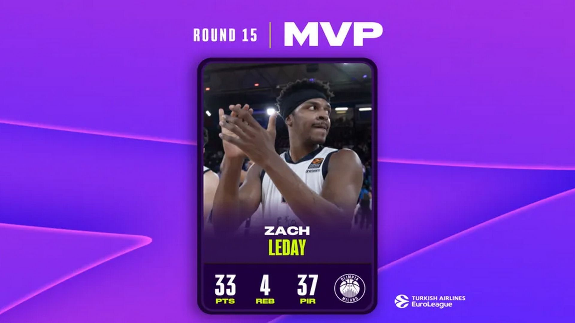 As the @OlimpiaMI1936 hot streak continues, a lot can be put down to the performance of one @ZachLeDay32 who is awarded MVP of the Round for Round 15 as he dominated in Barcelona 🔥